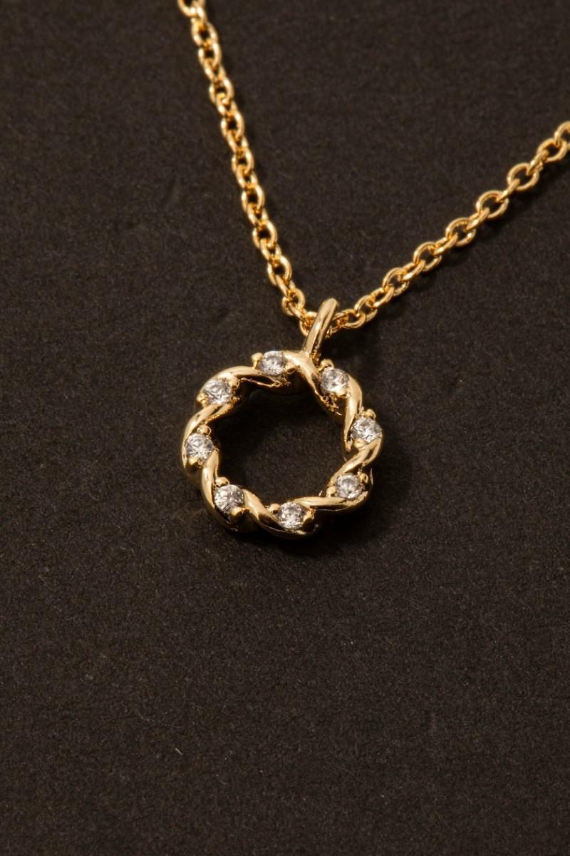 Gold Dipped Cubic Zirconia Twisted Hoop Pendant Necklace