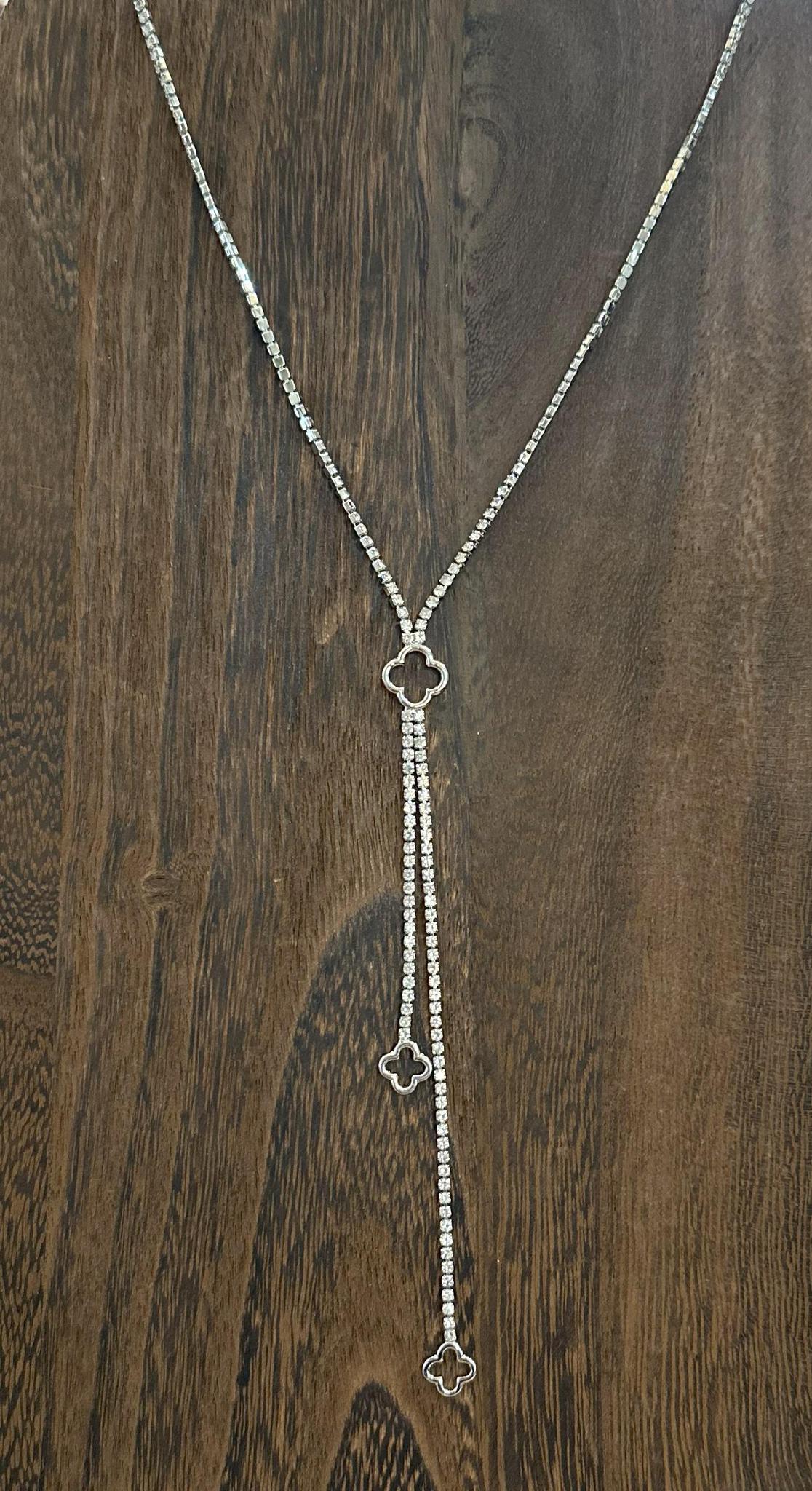 Silver CZ Clover Y-Drop Necklace
