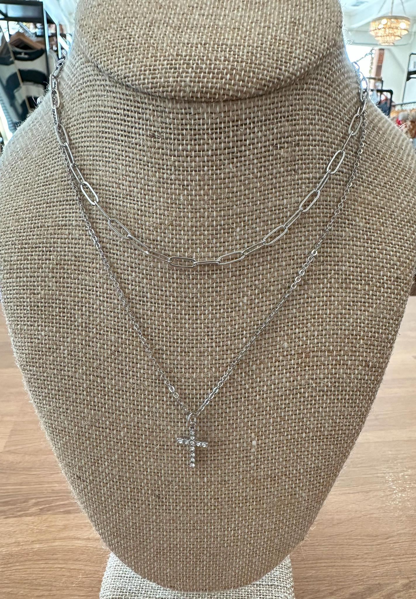 Silver Layered Necklace – Crystal Cross