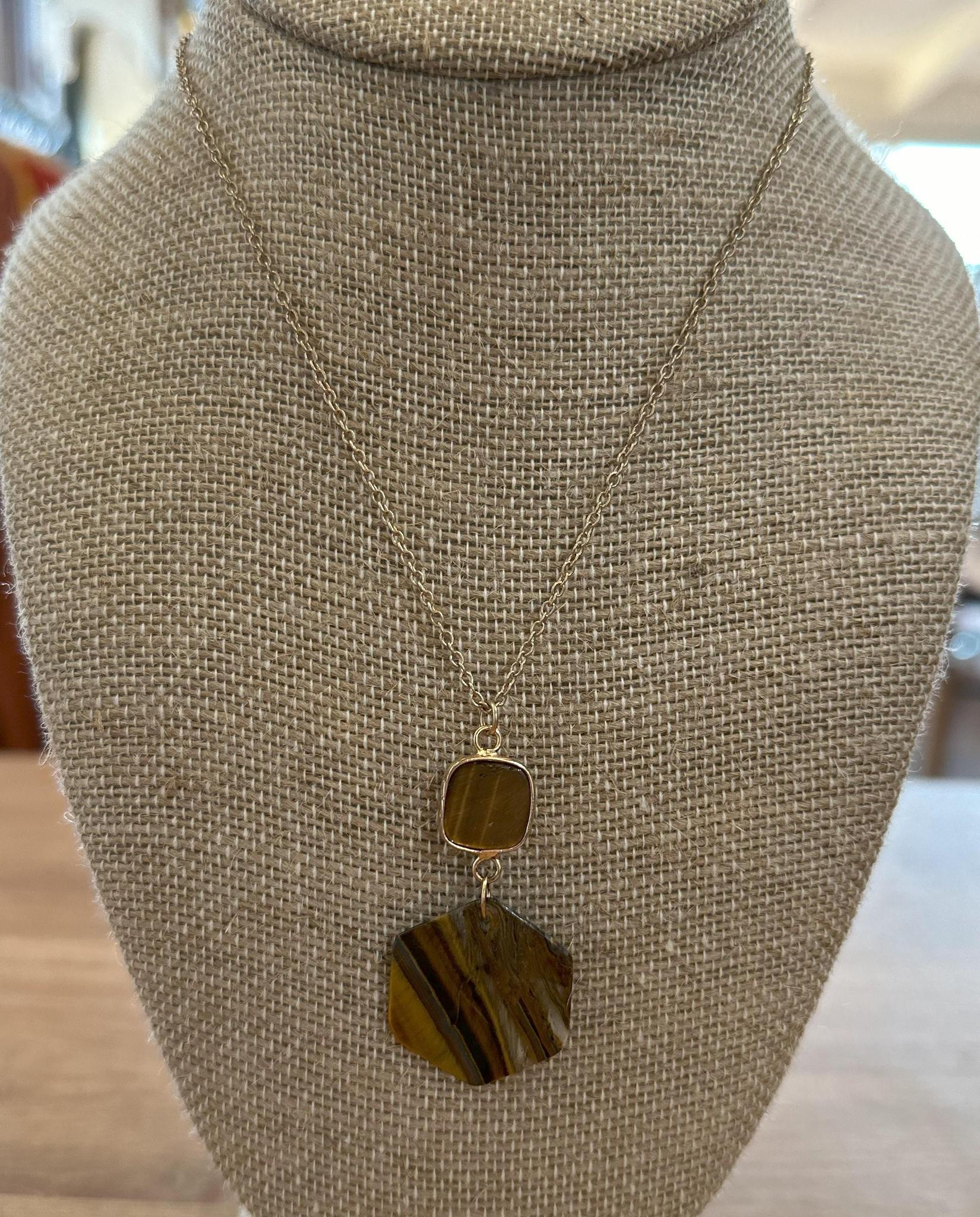 Gold Necklace with Brown Tiger Eye Pendant