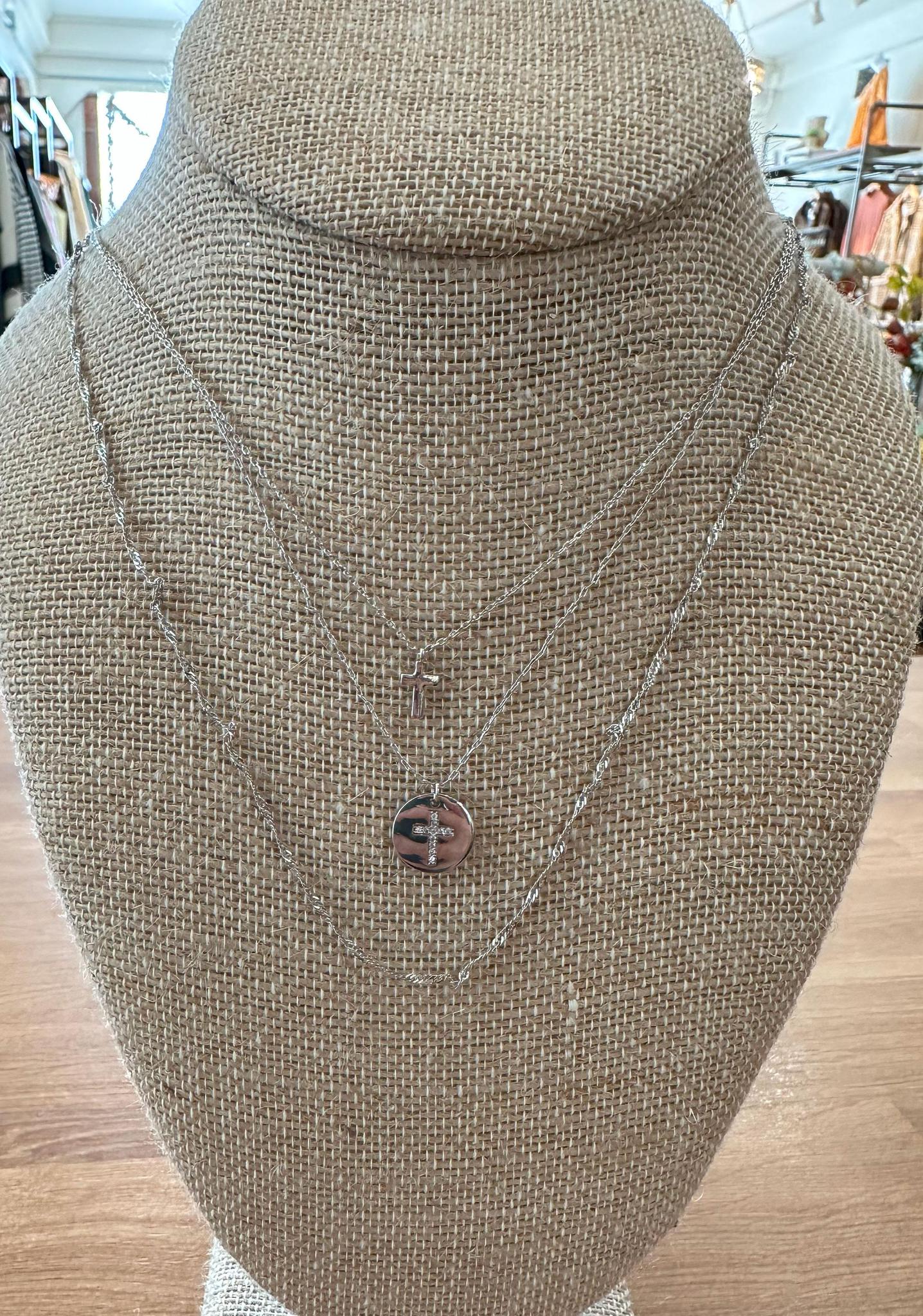 Silver Layered Cross Necklace