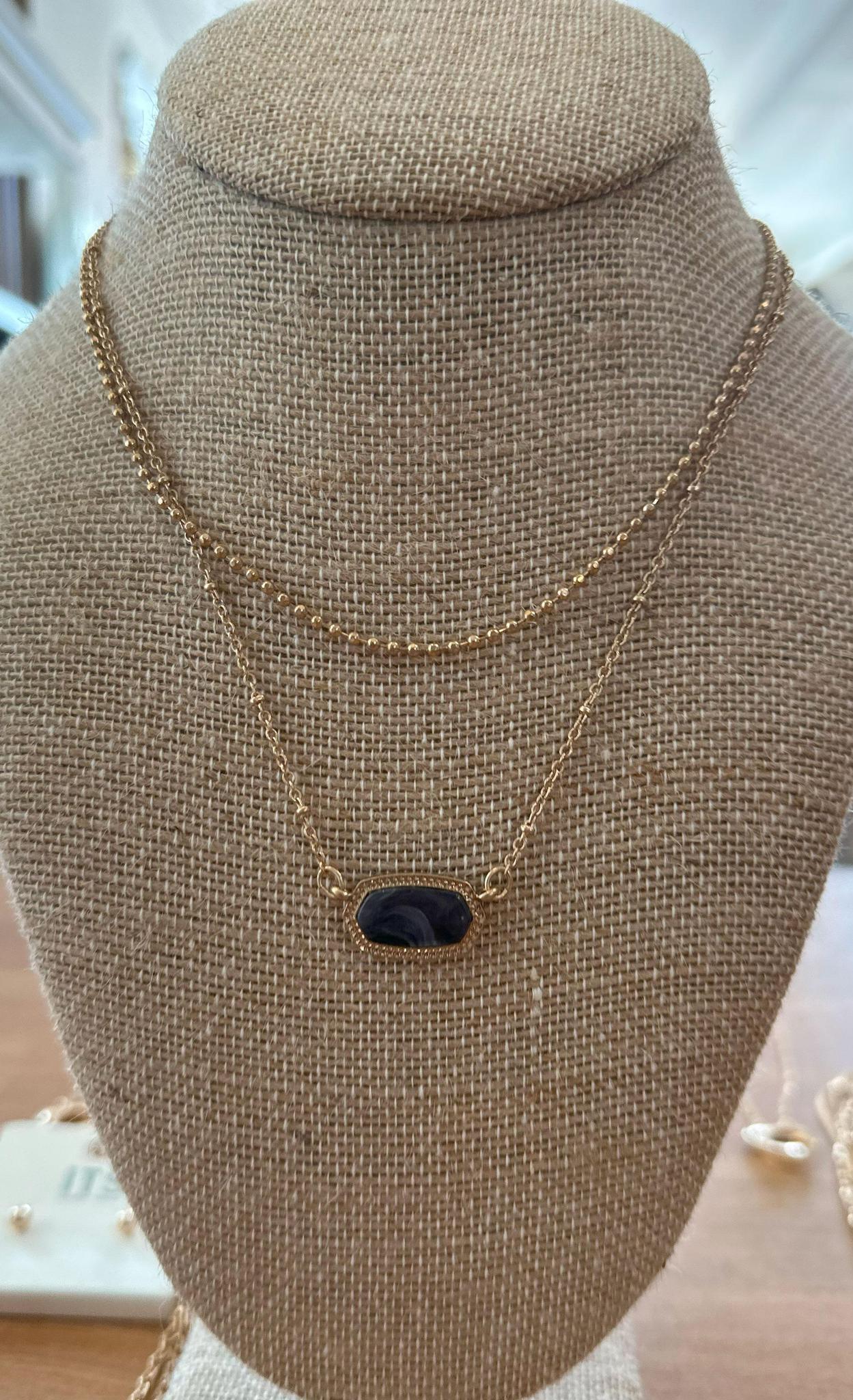 Gold Layered Necklace – Black Stone Pendant