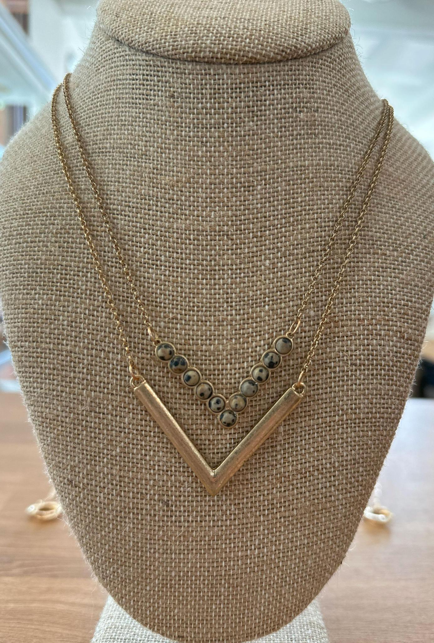 Dalmatian Jasper V-Bar Necklace