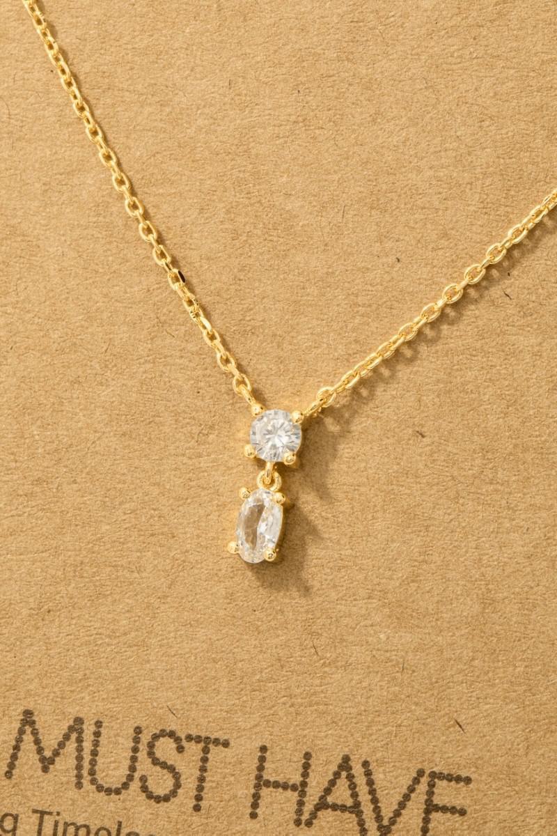 Gold Dipped Cubic Zirconia Circle & Oval Pendant Necklace