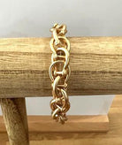 A modern twist on a classic — this Gold Linked Bracelet brings a bold, statement look without sacrificing comfort. Designed with lightweight metal links that curve in a horseshoe-inspired shape, this bracelet is finished with an easy elastic stretch band so it slips on and off effortlessly. Perfect to wear solo or stacked with your favorite bangles.