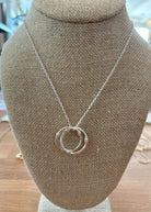 Sleek and modern, this silver necklace features two textured interlocking rings on a delicate chain. A versatile piece that symbolizes strength and connection, perfect for everyday wear or layering with your favorite chains.