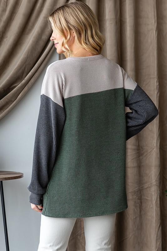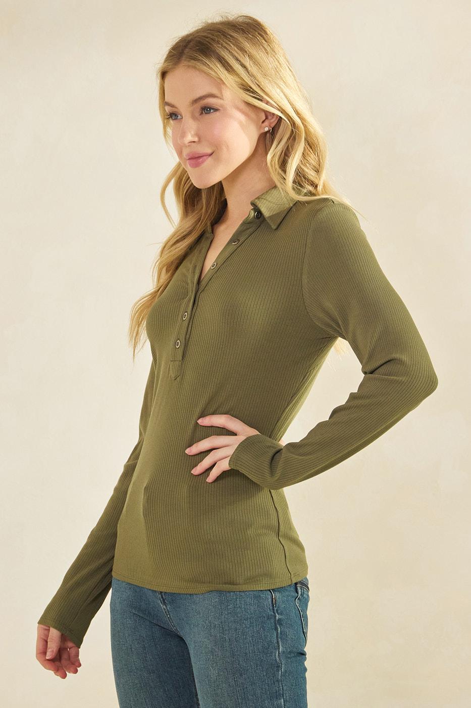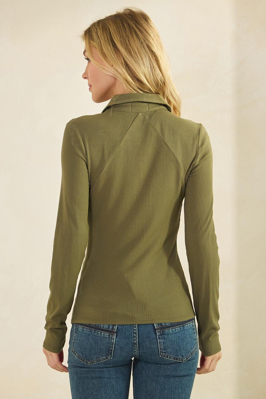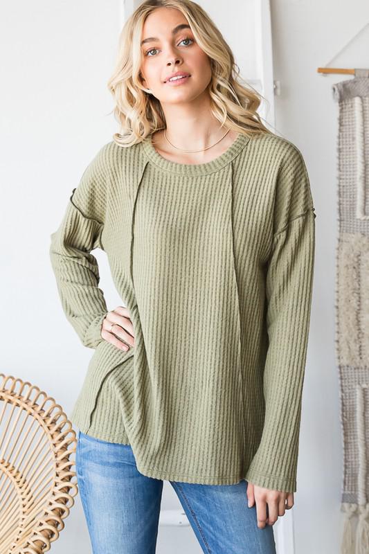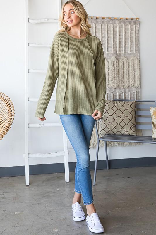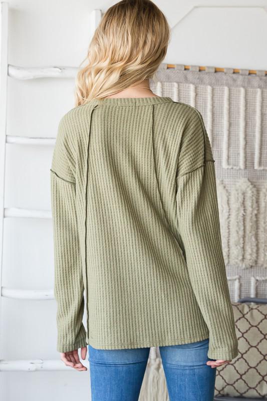 Crew Neck Ribbed Long Sleeve Shirt - Olive