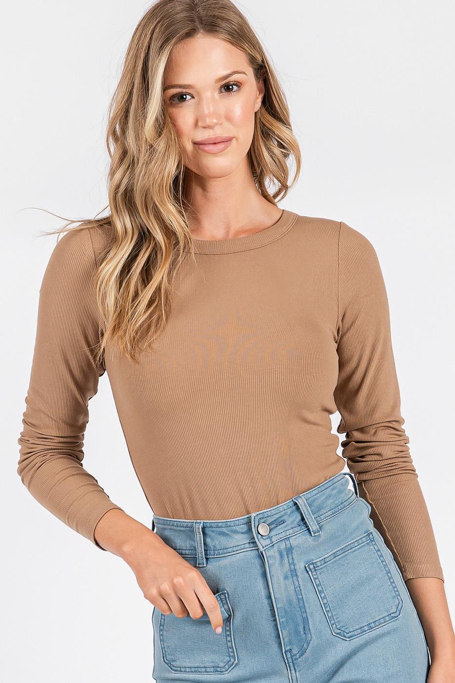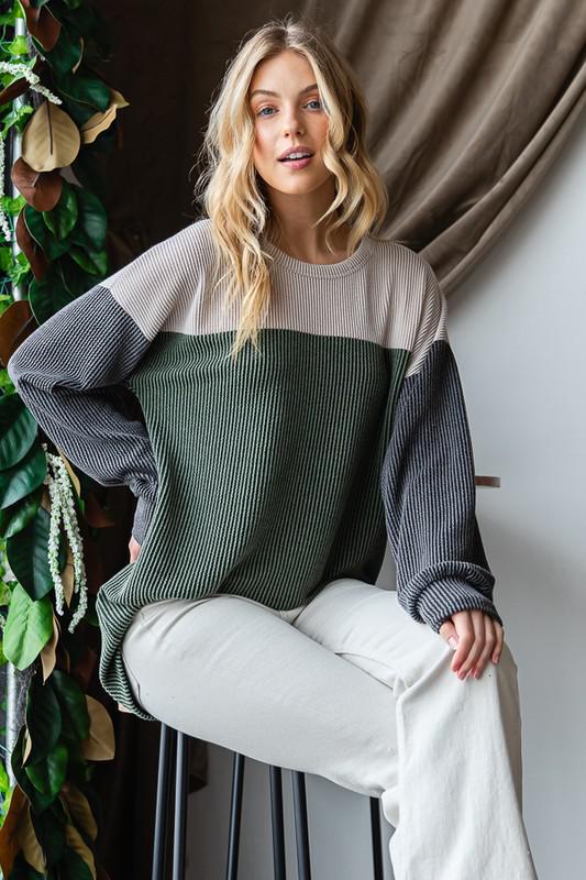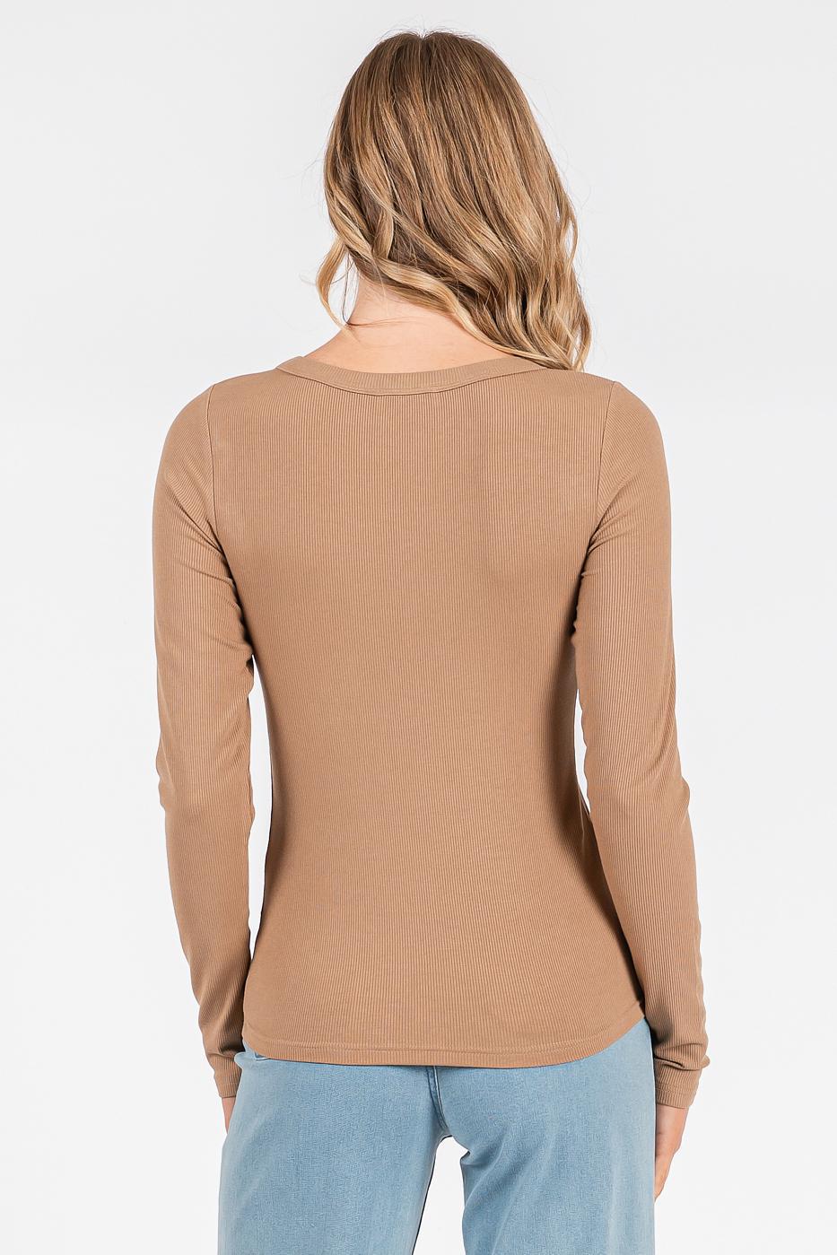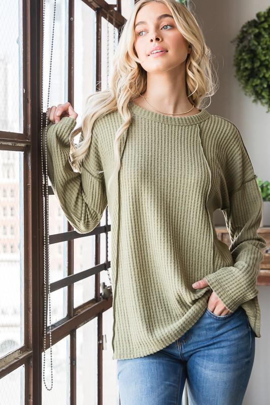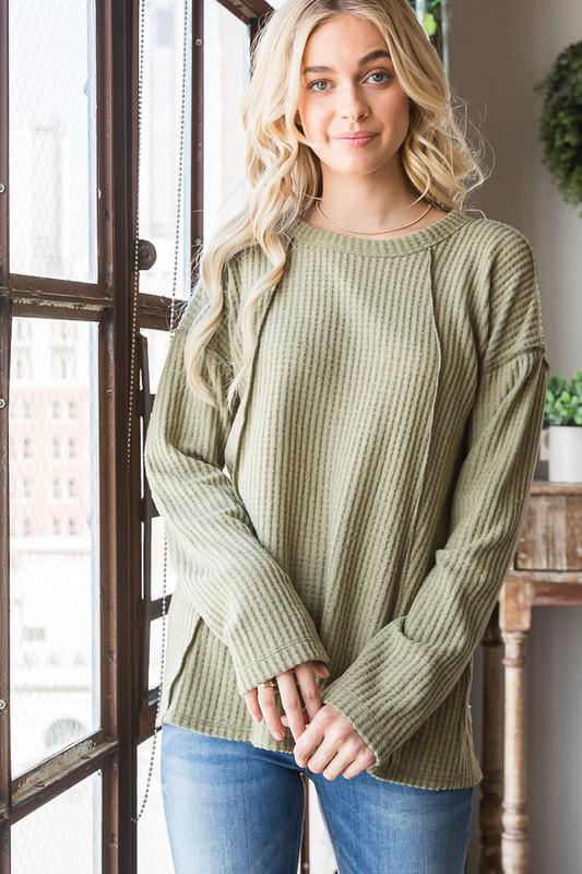 Crew Neck Ribbed Long Sleeve Shirt - Olive