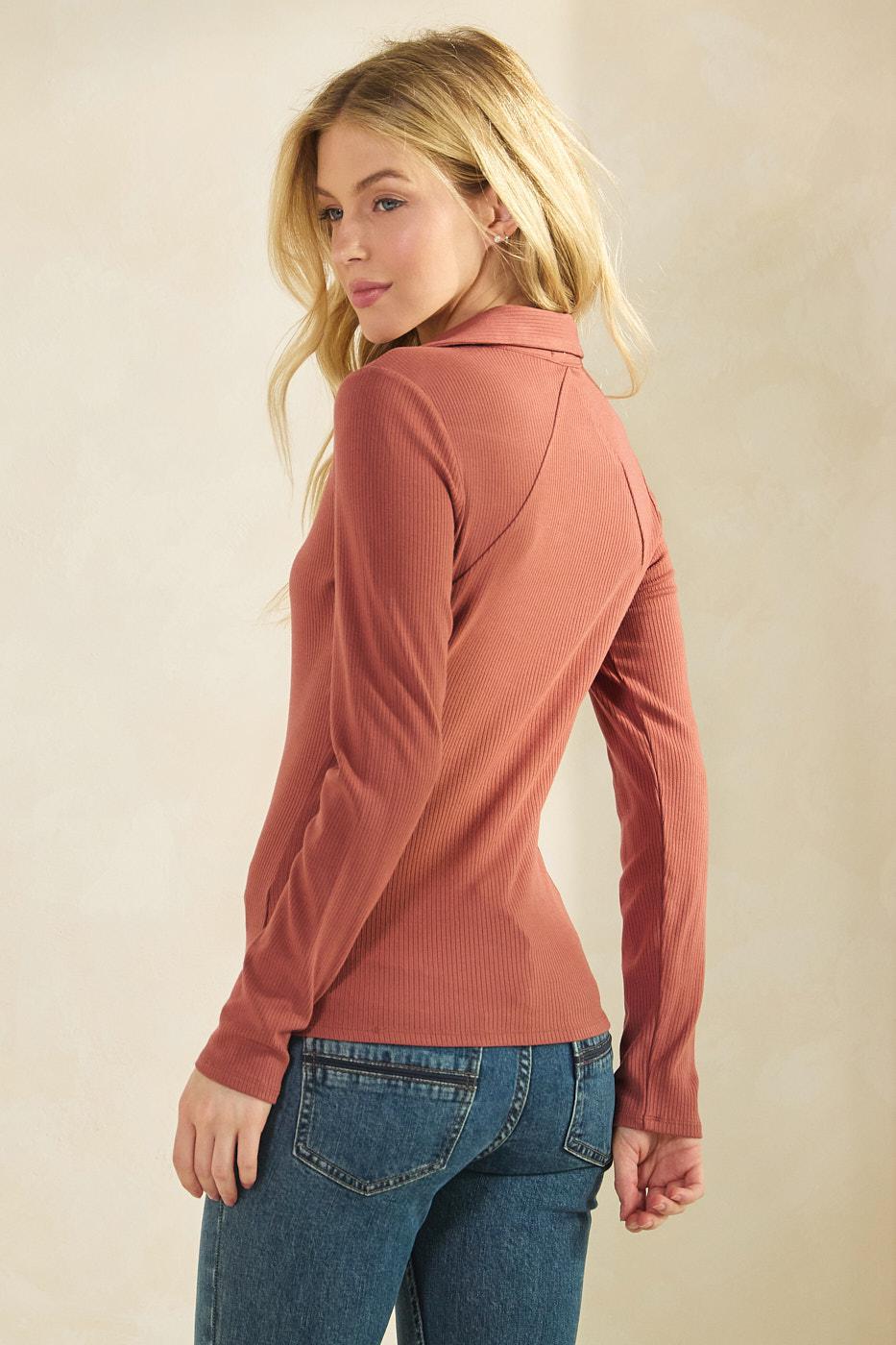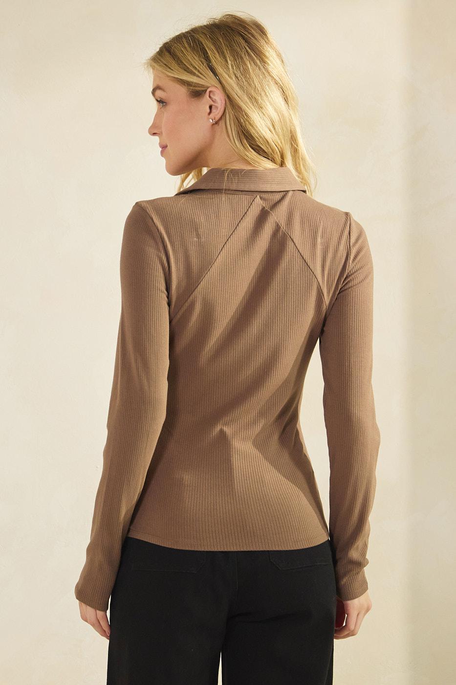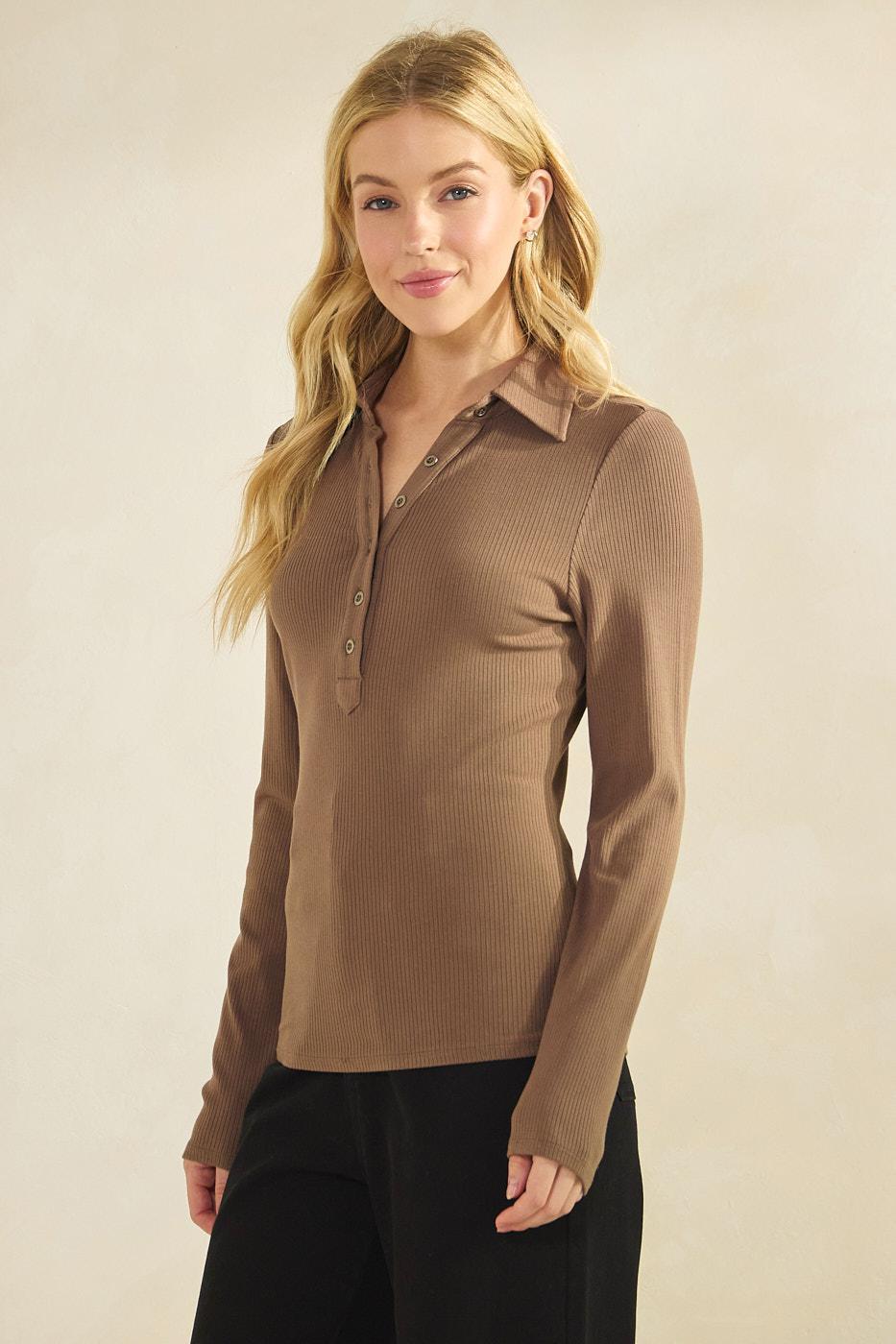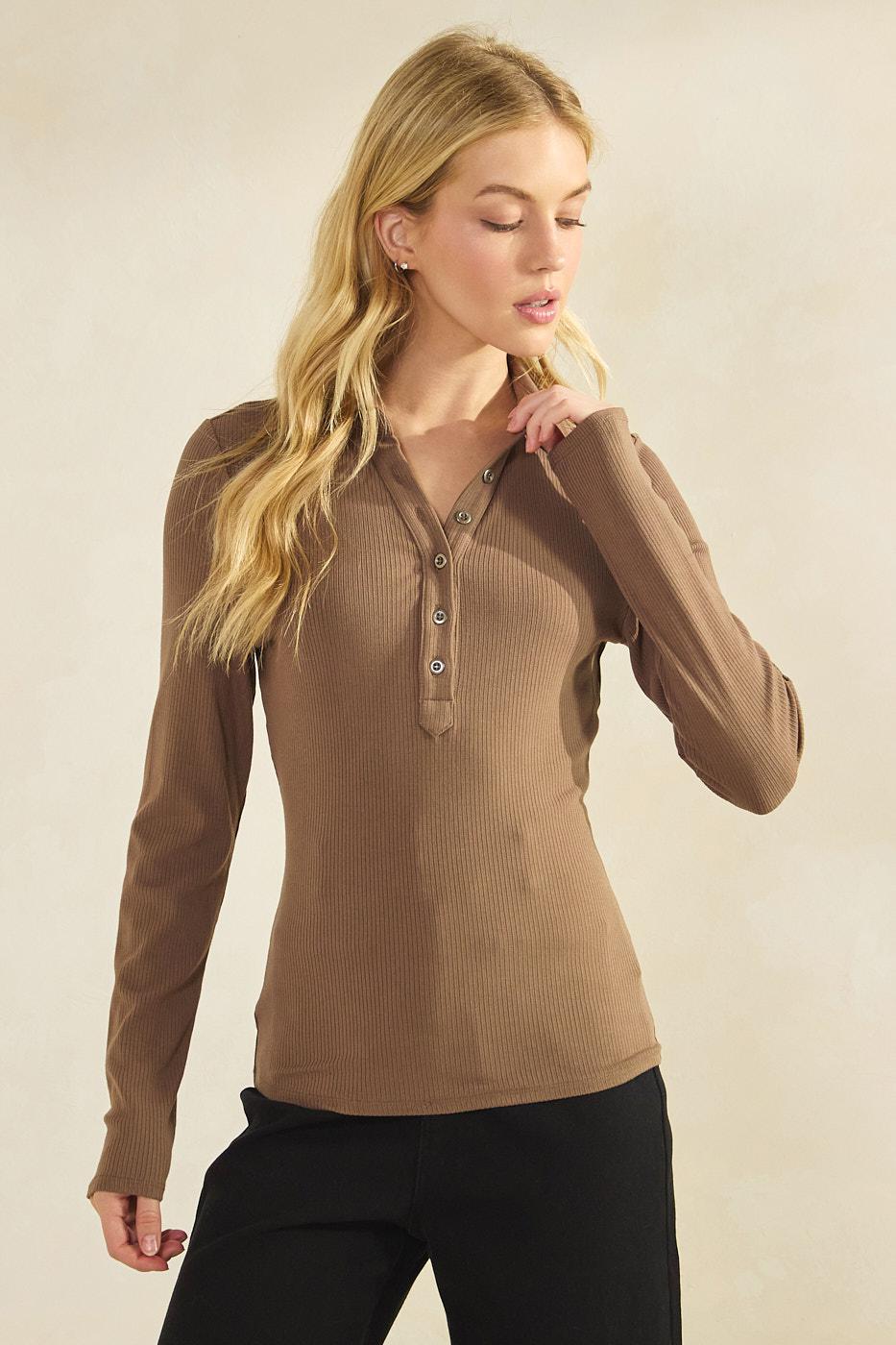 Crew Neck Ribbed Long Sleeve Shirt - Olive
