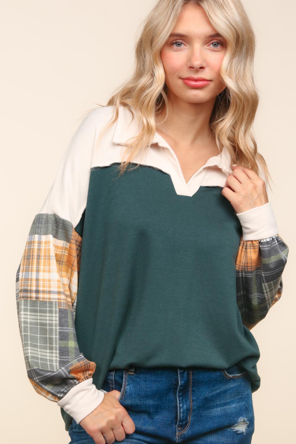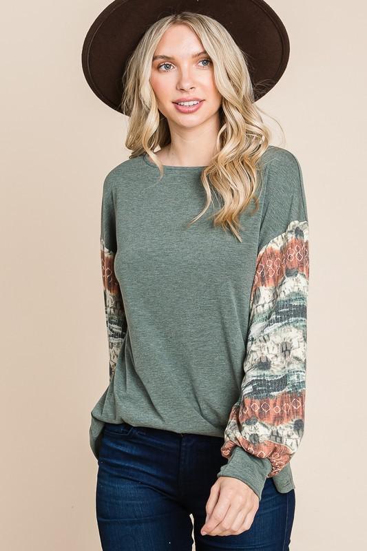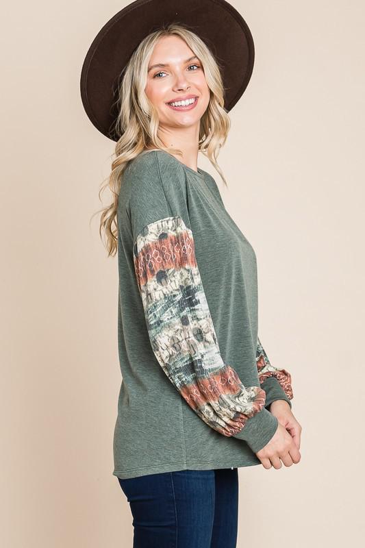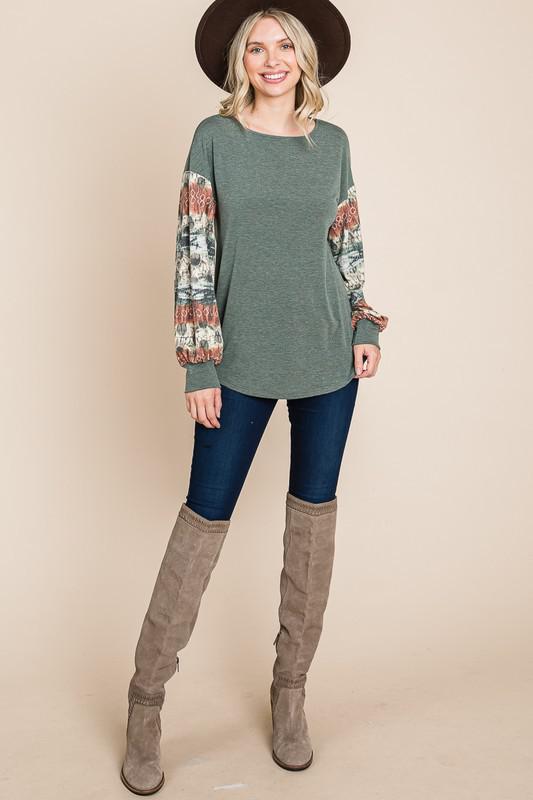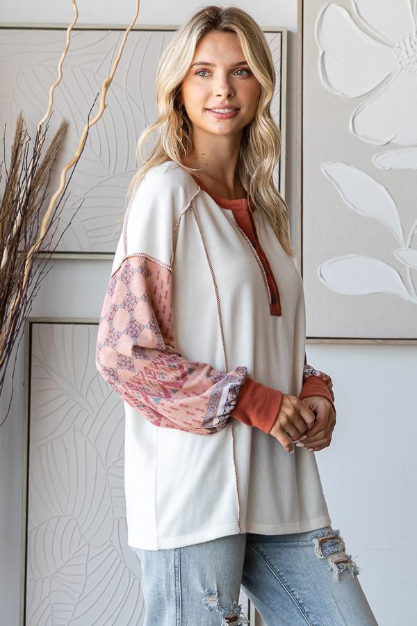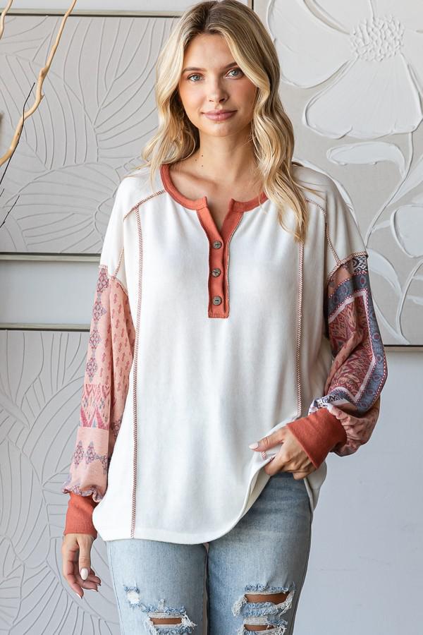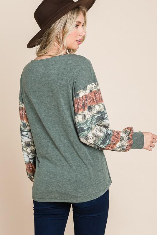 Woven Floral Long Sleeve Top - Back Button Key Hole