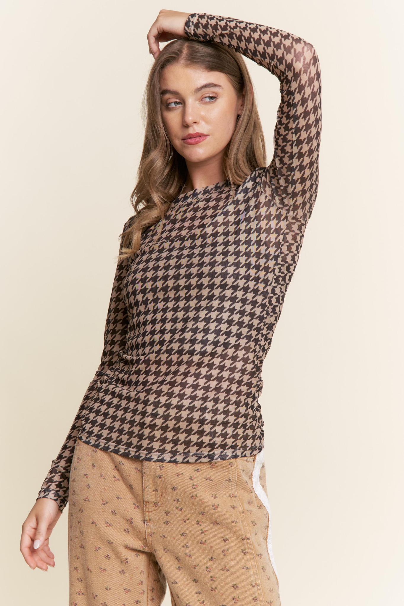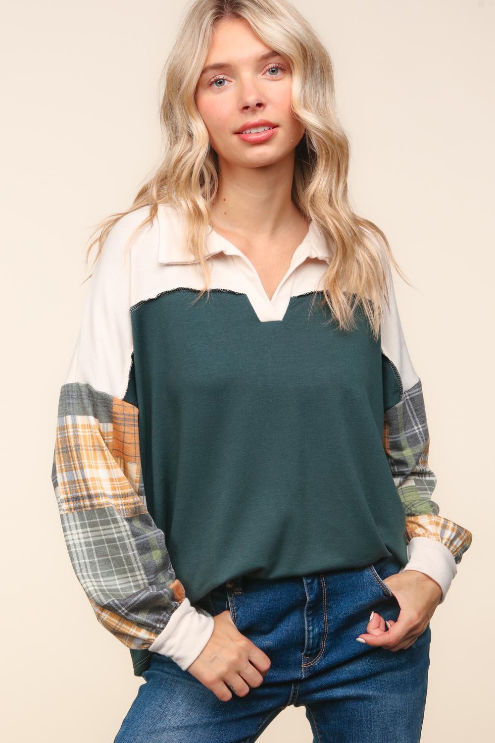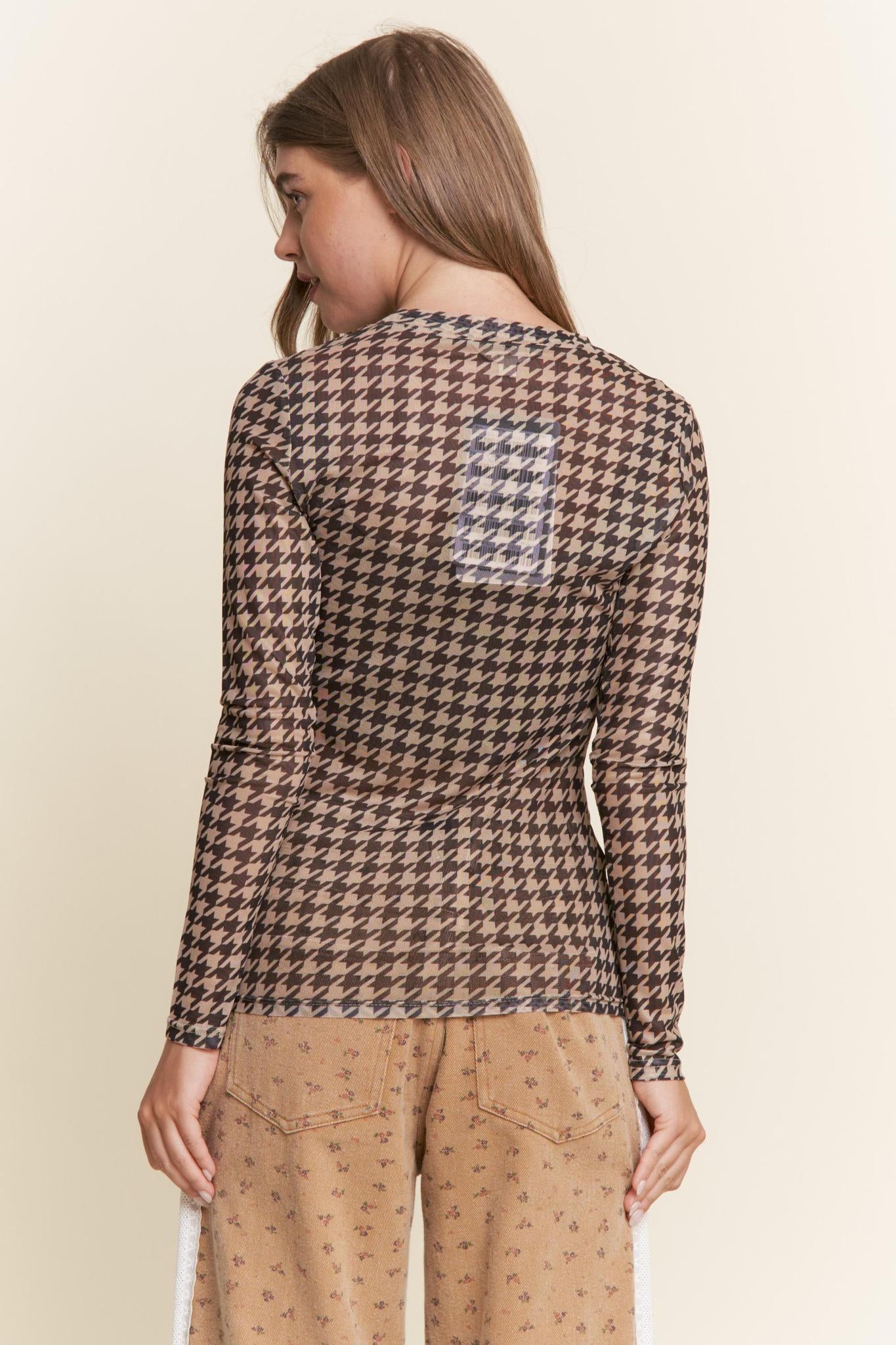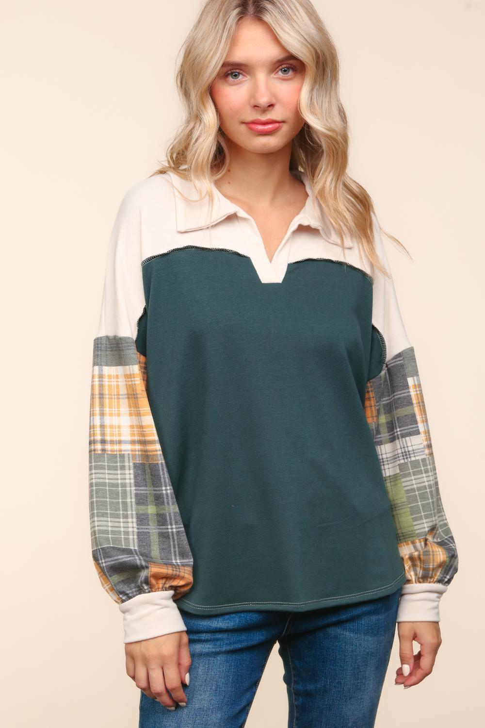 Woven Floral Long Sleeve Top - Back Button Key Hole