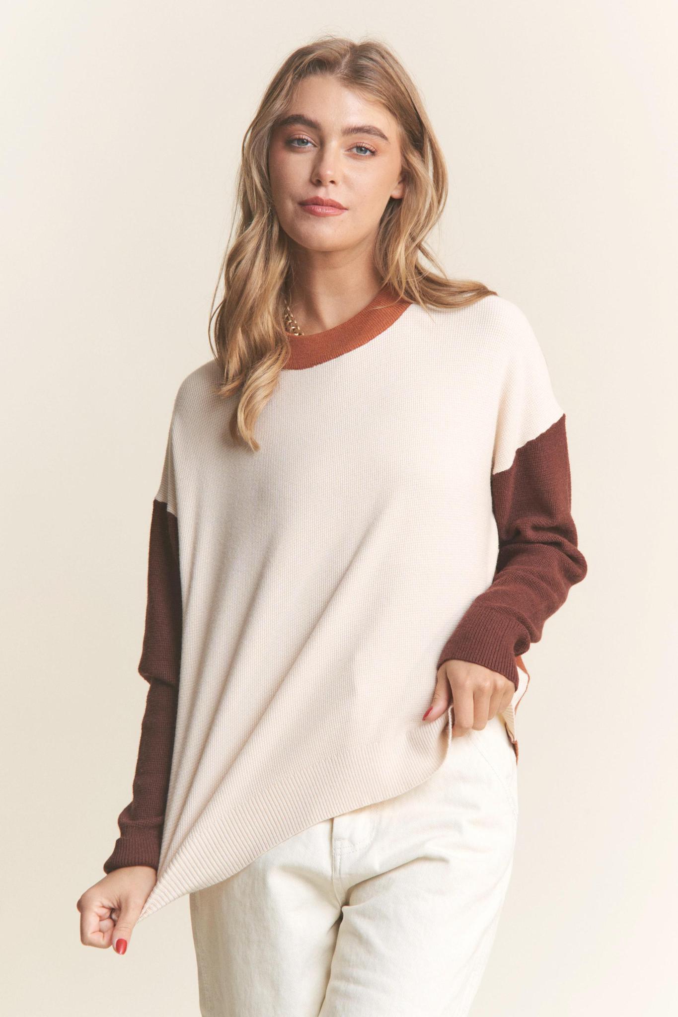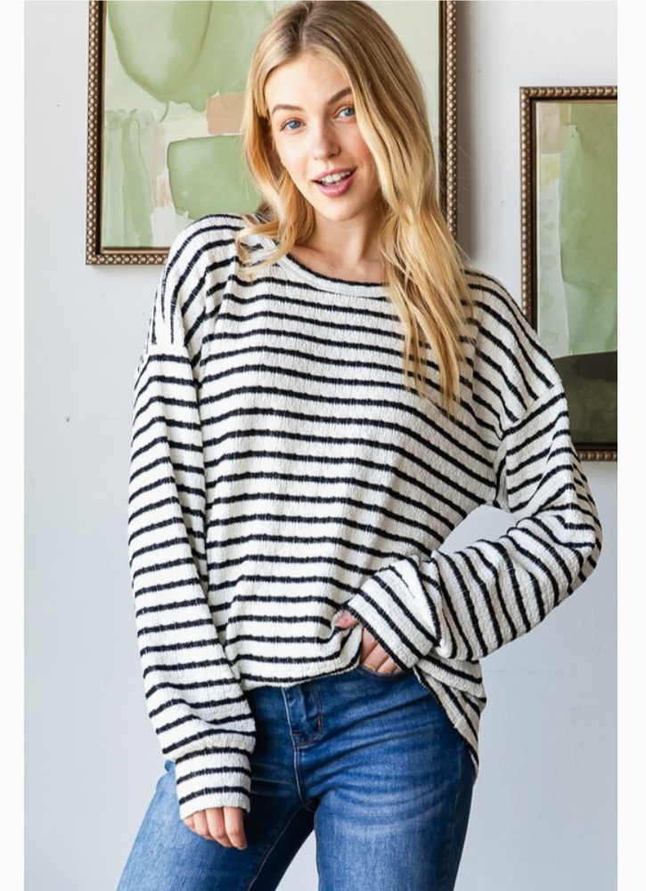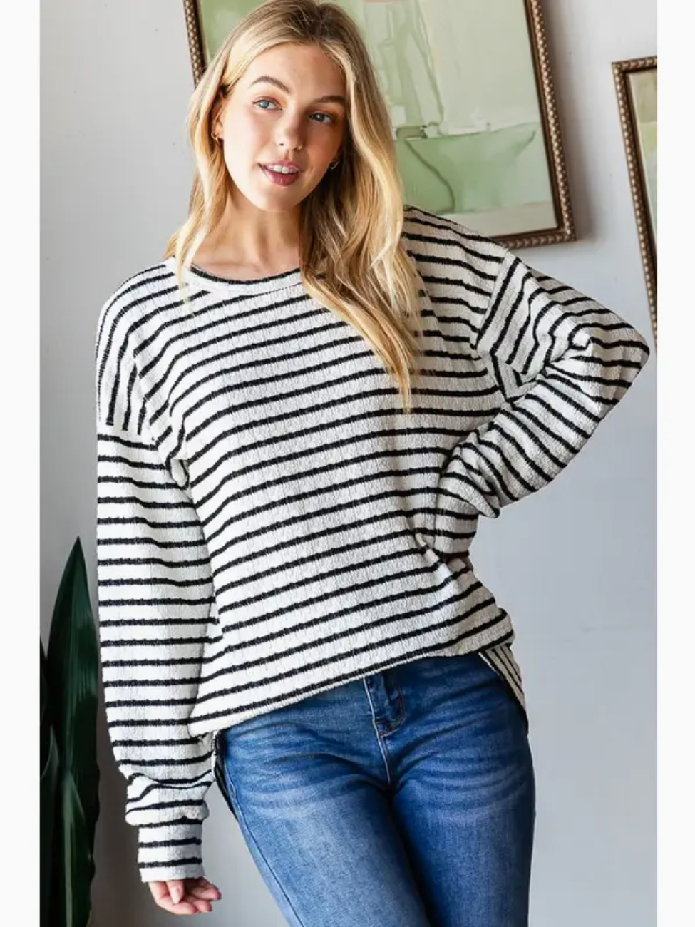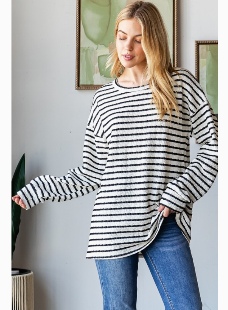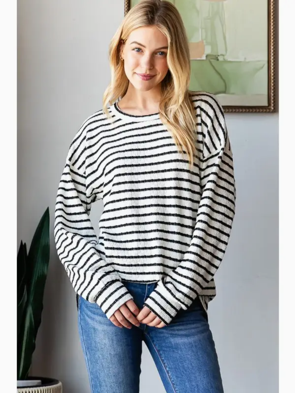 Long Sleeve Round Neck Stripe Urban Ribbed Top