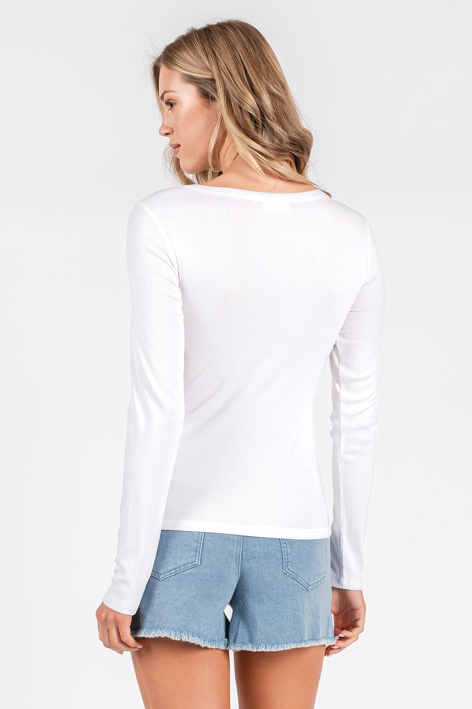 Crew Neck Ribbed Long Sleeve Shirt - Black