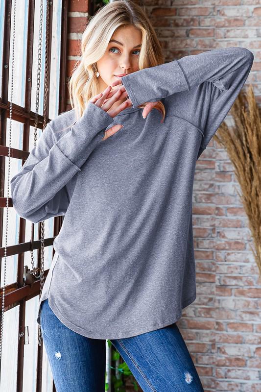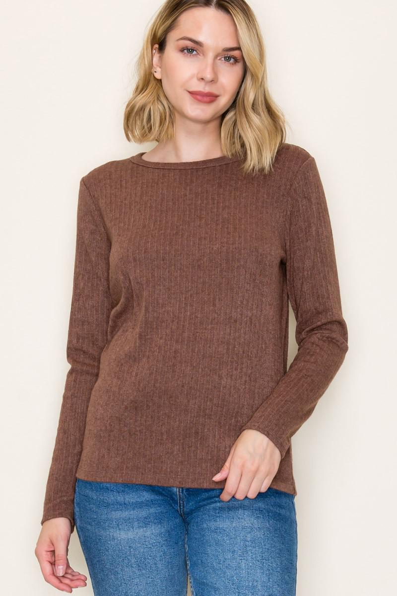 Crew Neck Ribbed Long Sleeve Shirt - Charcoal