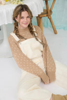 A versatile neutral khaki color makes this heart sweater easy to style with jeans, trousers, or overalls—making it a go-to piece you’ll reach for again and again.