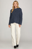If winter had a personality, it would absolutely be this sweater — soft, textured, and impossibly easy to throw on with anything. The Midnight Pretzel Cable Cozy Sweater is made for chilly mornings, January errands, and those “I just want to feel warm but still look cute” days.