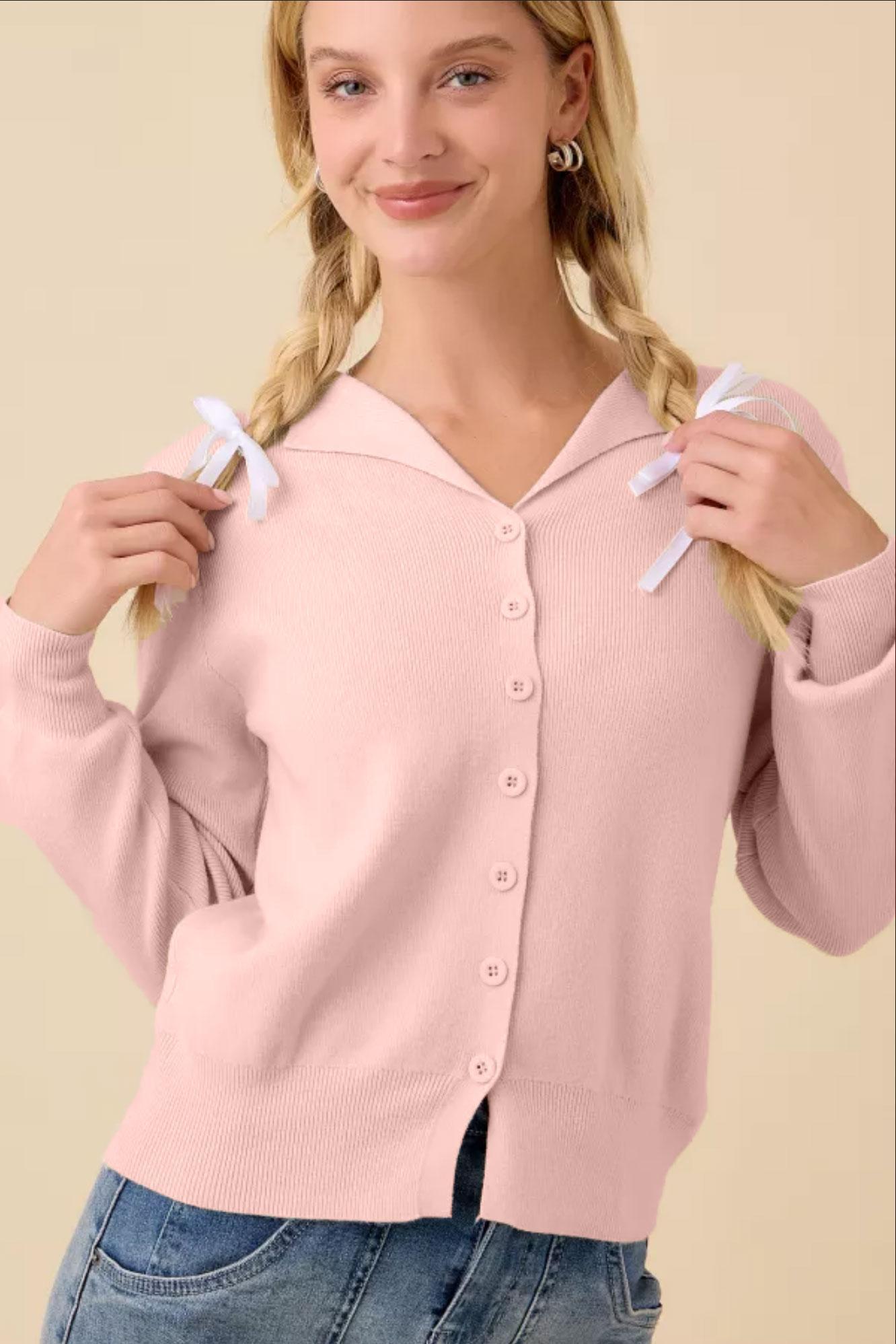 Finished in a soft dusty pink that works year-round, this cardigan is an easy yes for real-life outfits — comfortable, flattering, and simple in the best way.