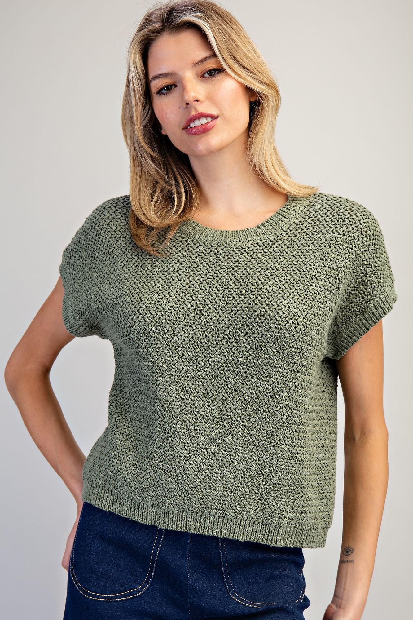 Solid Cap Sleeve Knit Top