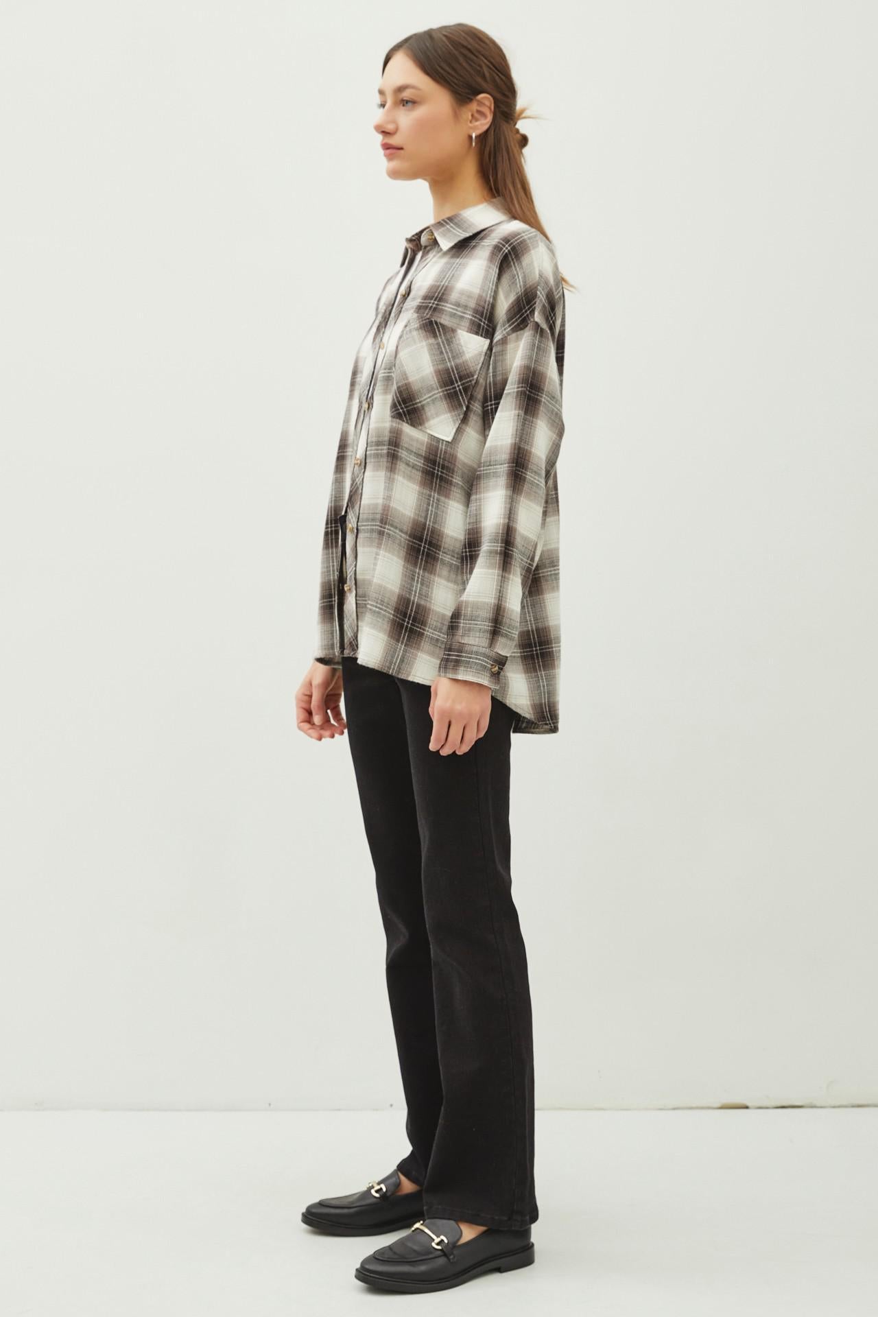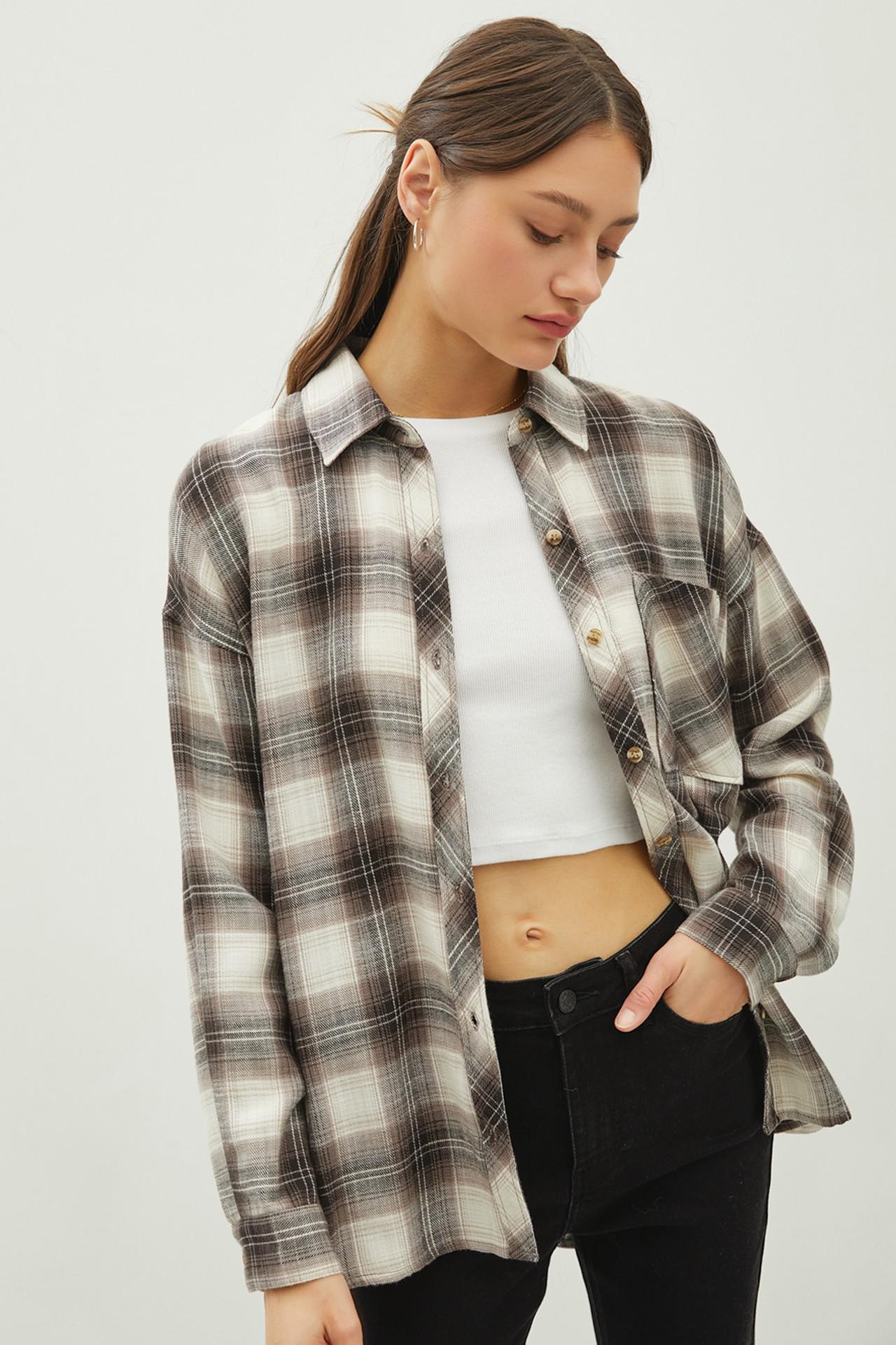Oversized Plaid Flannel Shirt – Charcoal & Brown