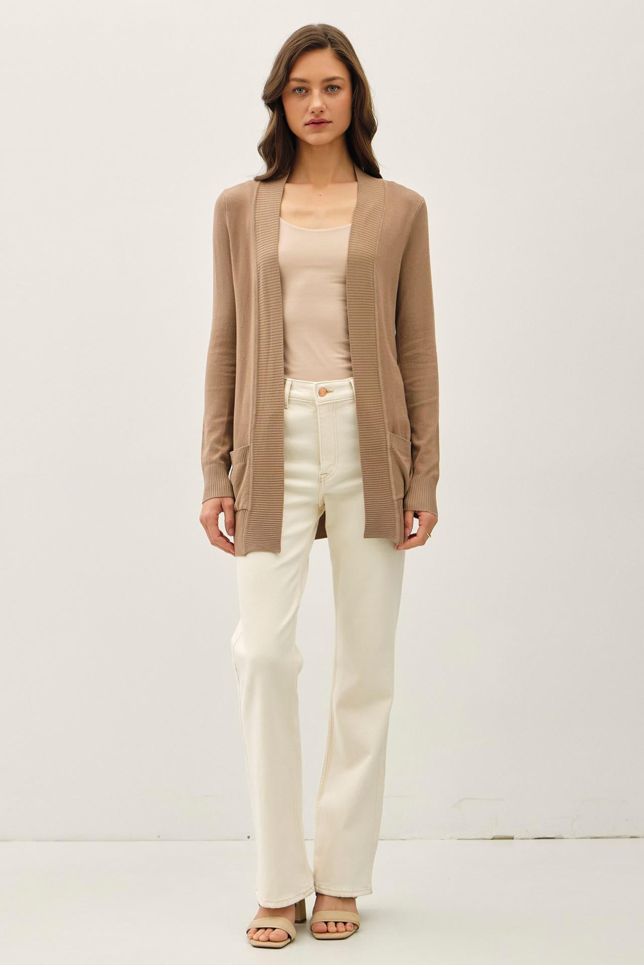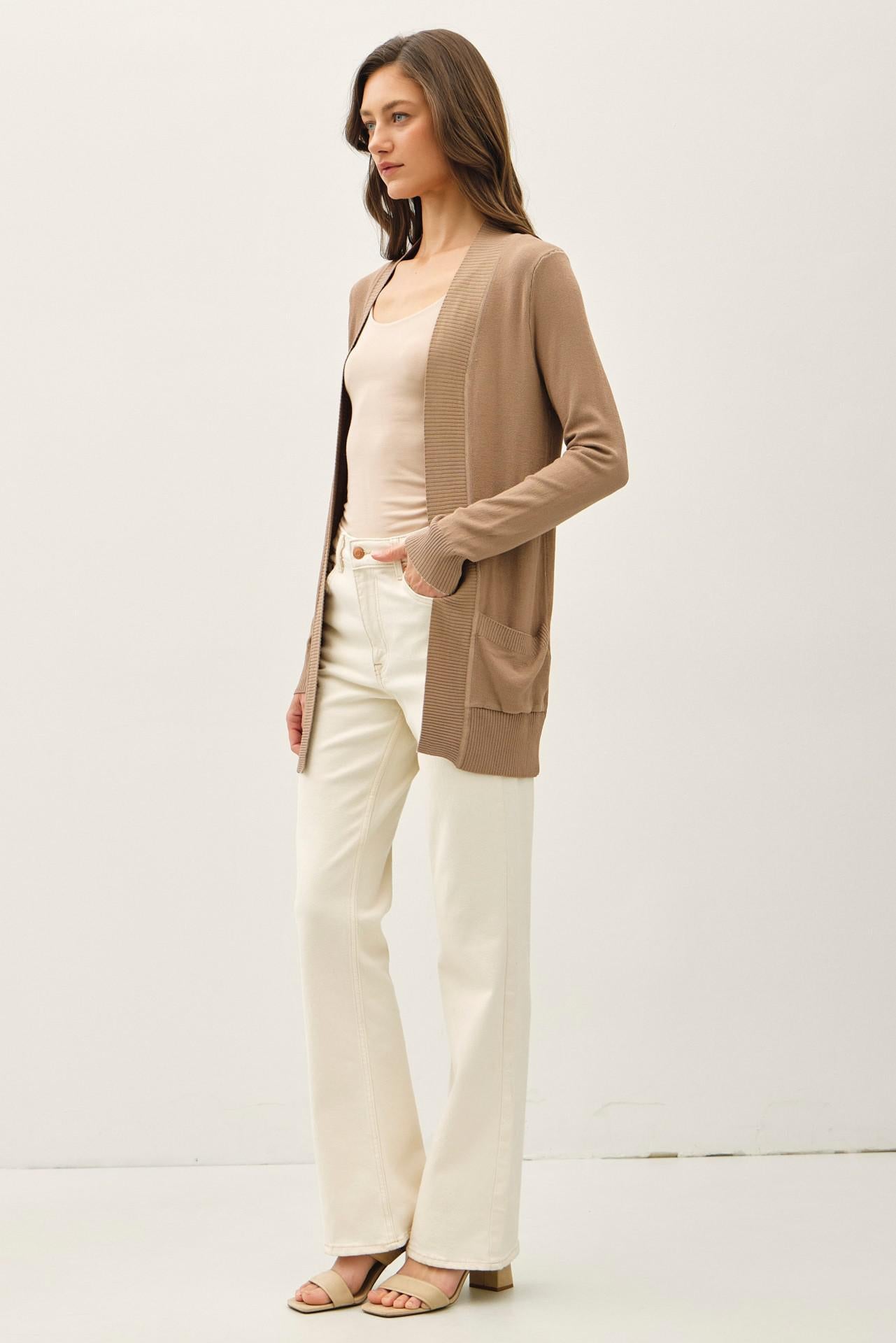 Wool Blend Open Front Cardigan
