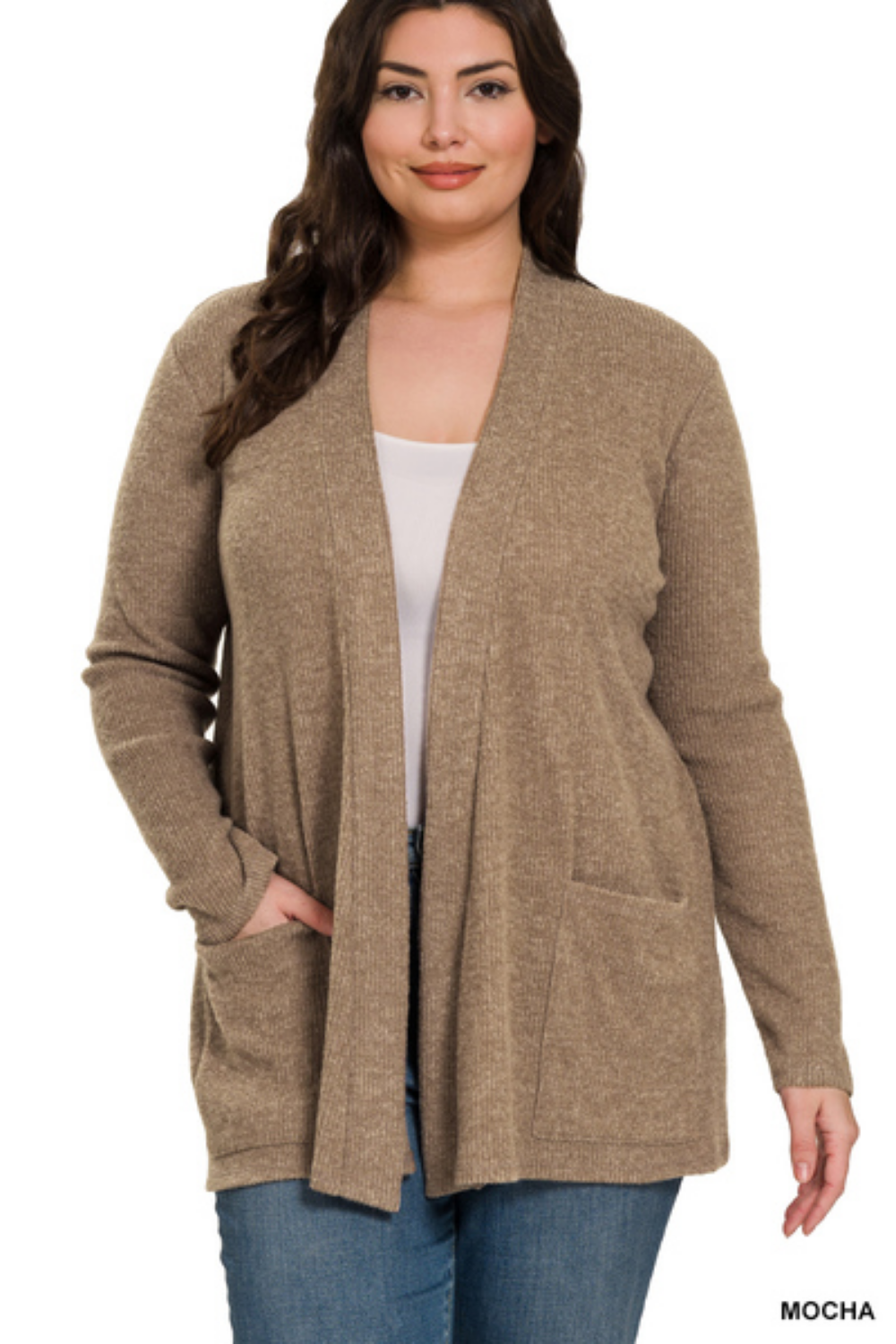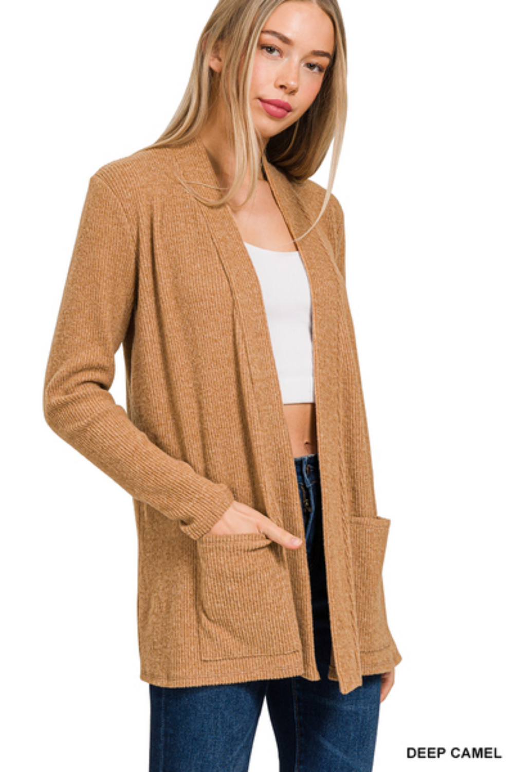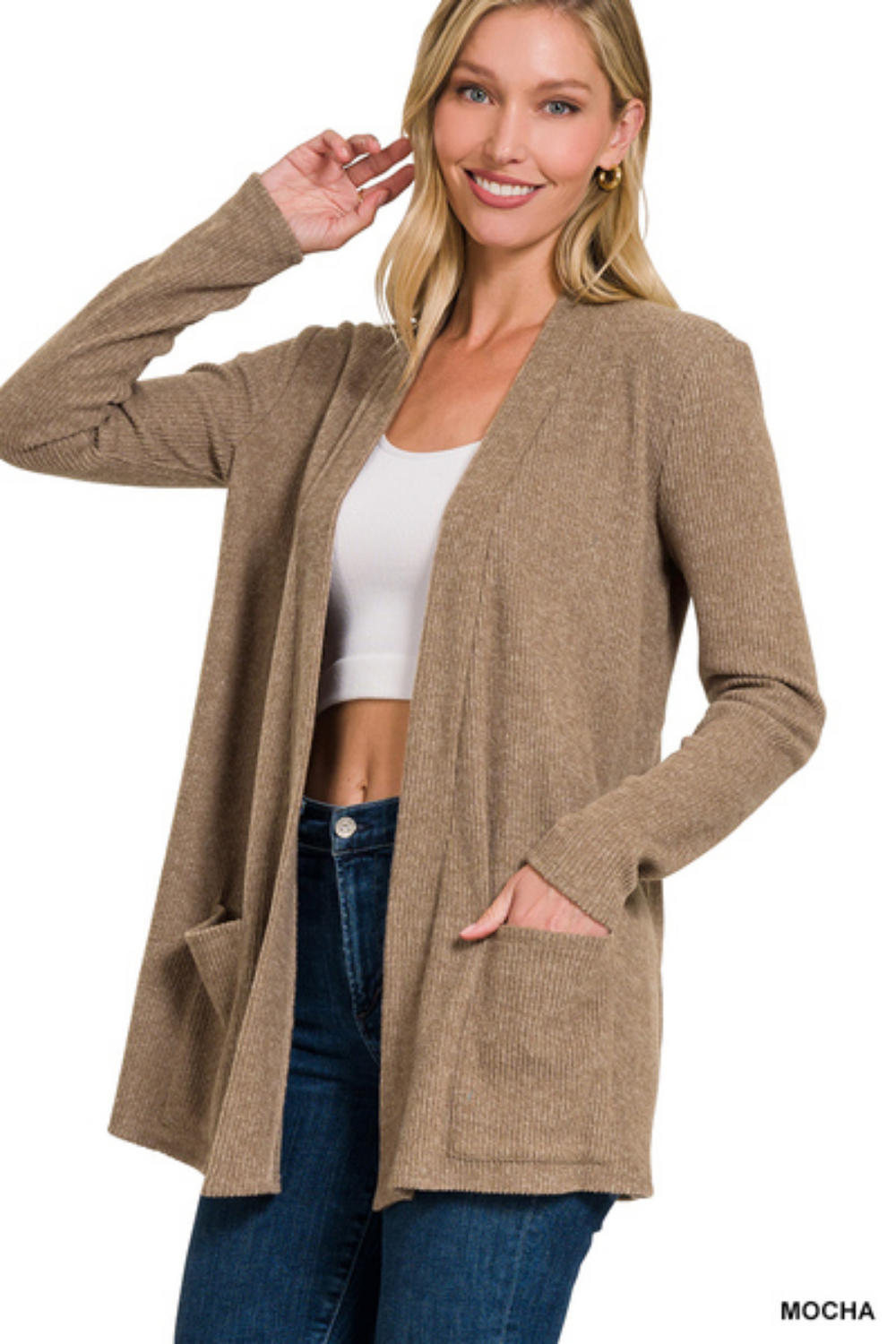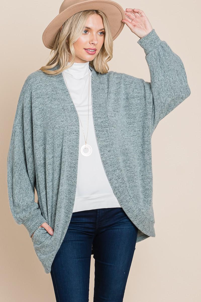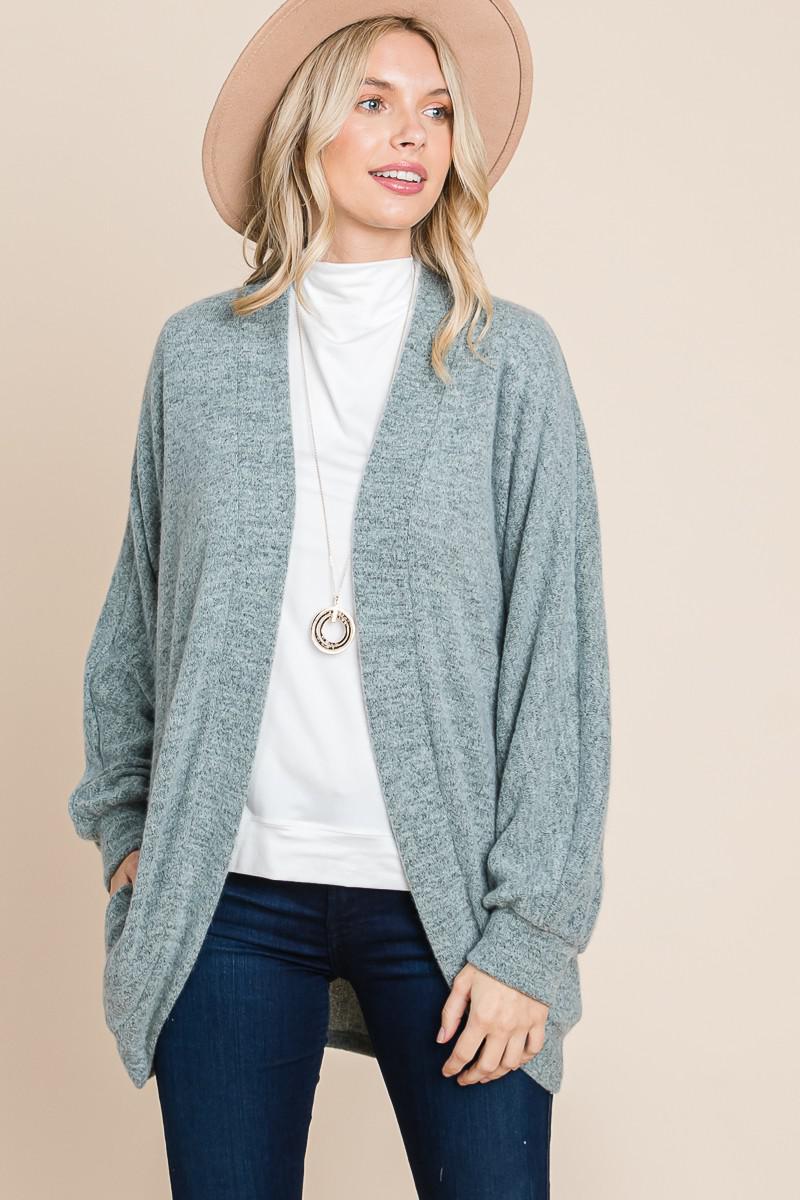 Heather Ribbed Sweater Open Front Cardigan