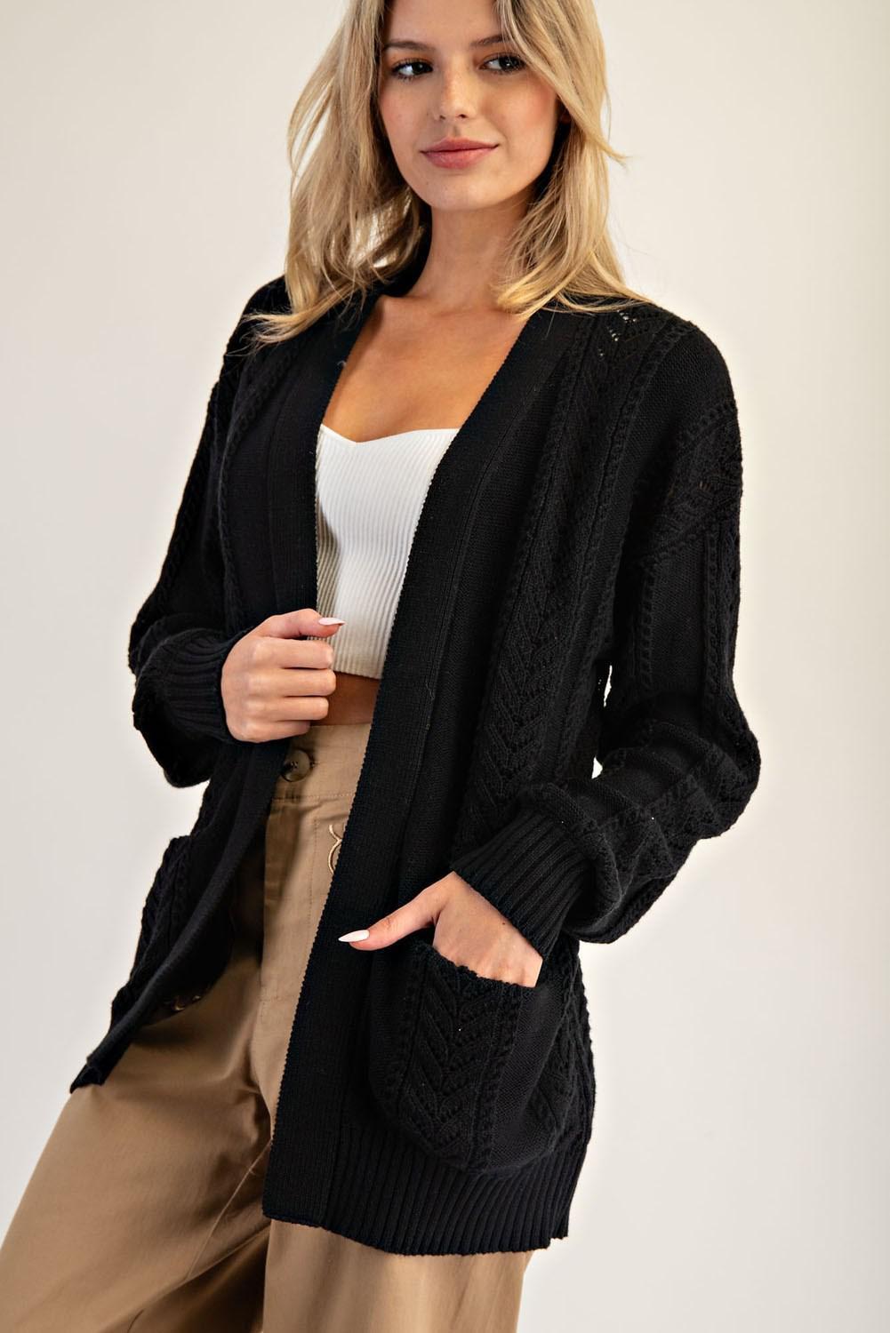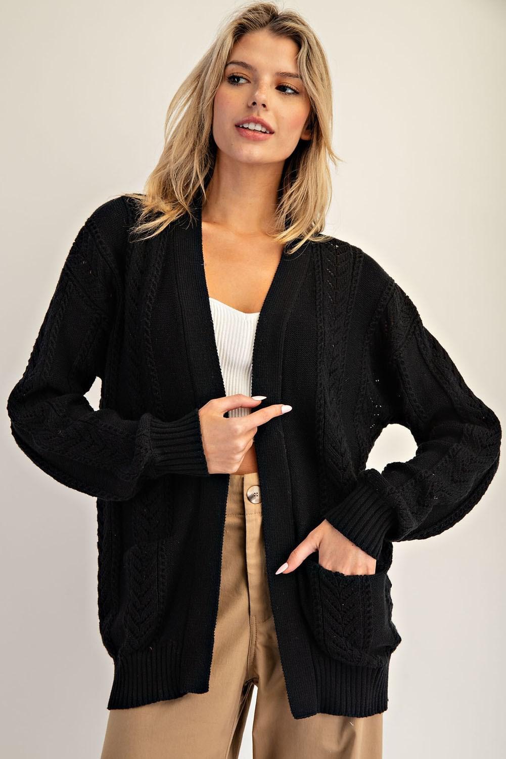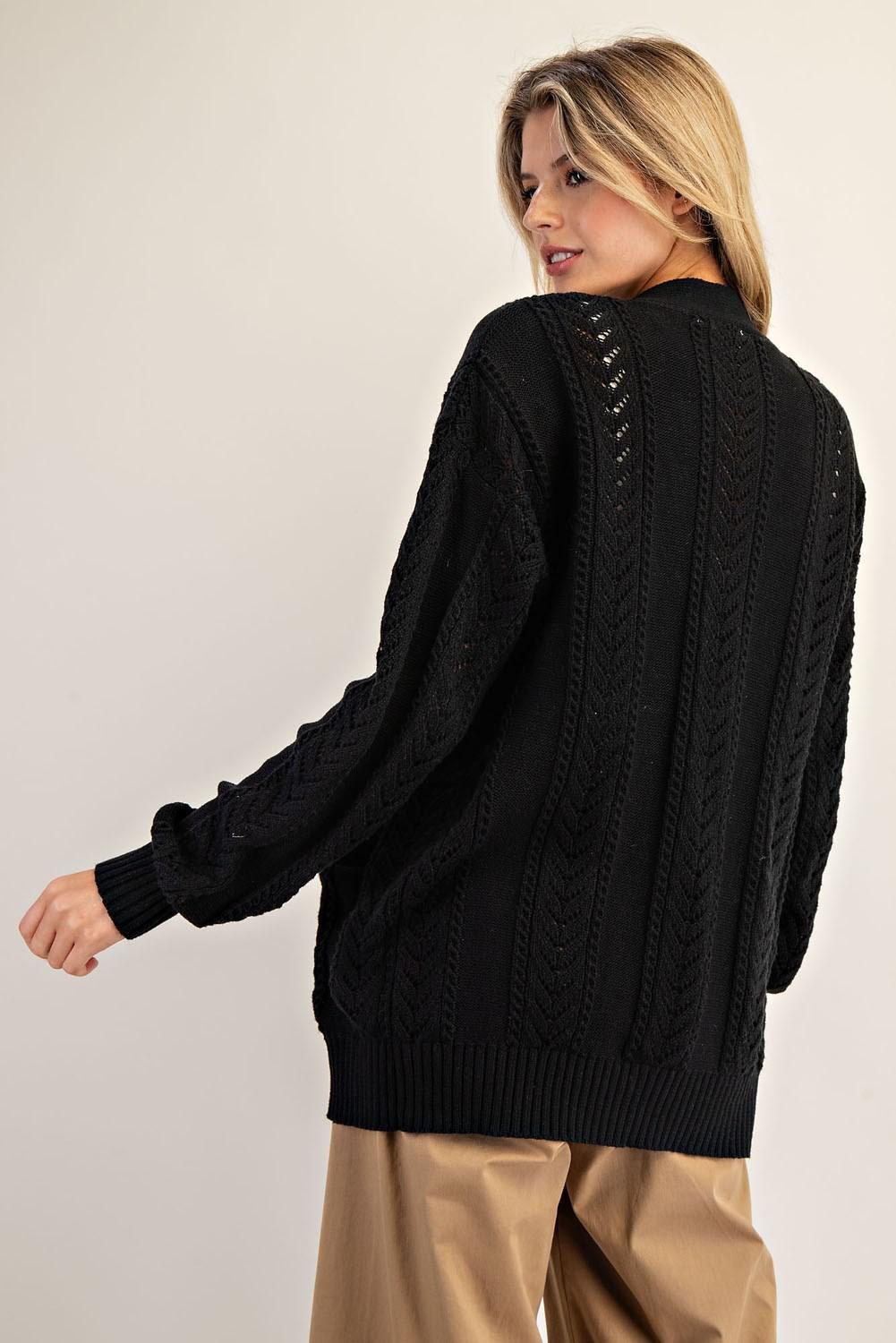 Timeless Black Open-Knit Cardigan