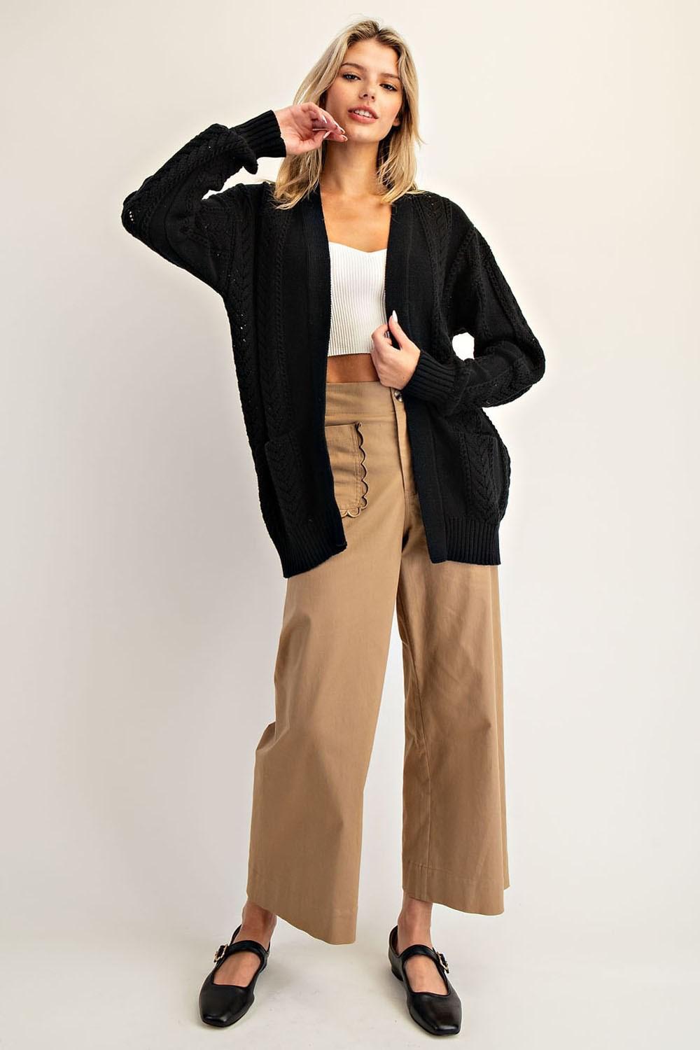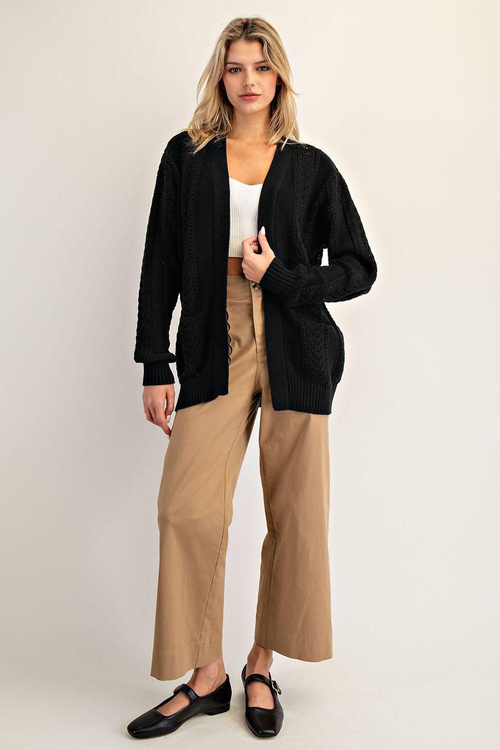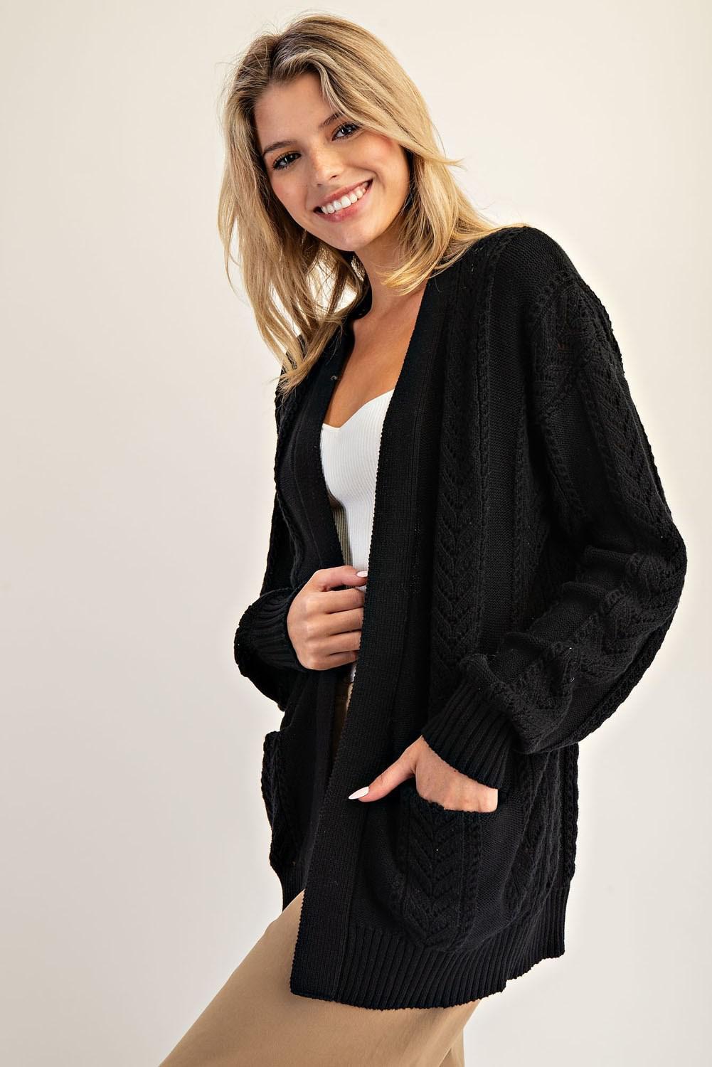 Timeless Black Open-Knit Cardigan
