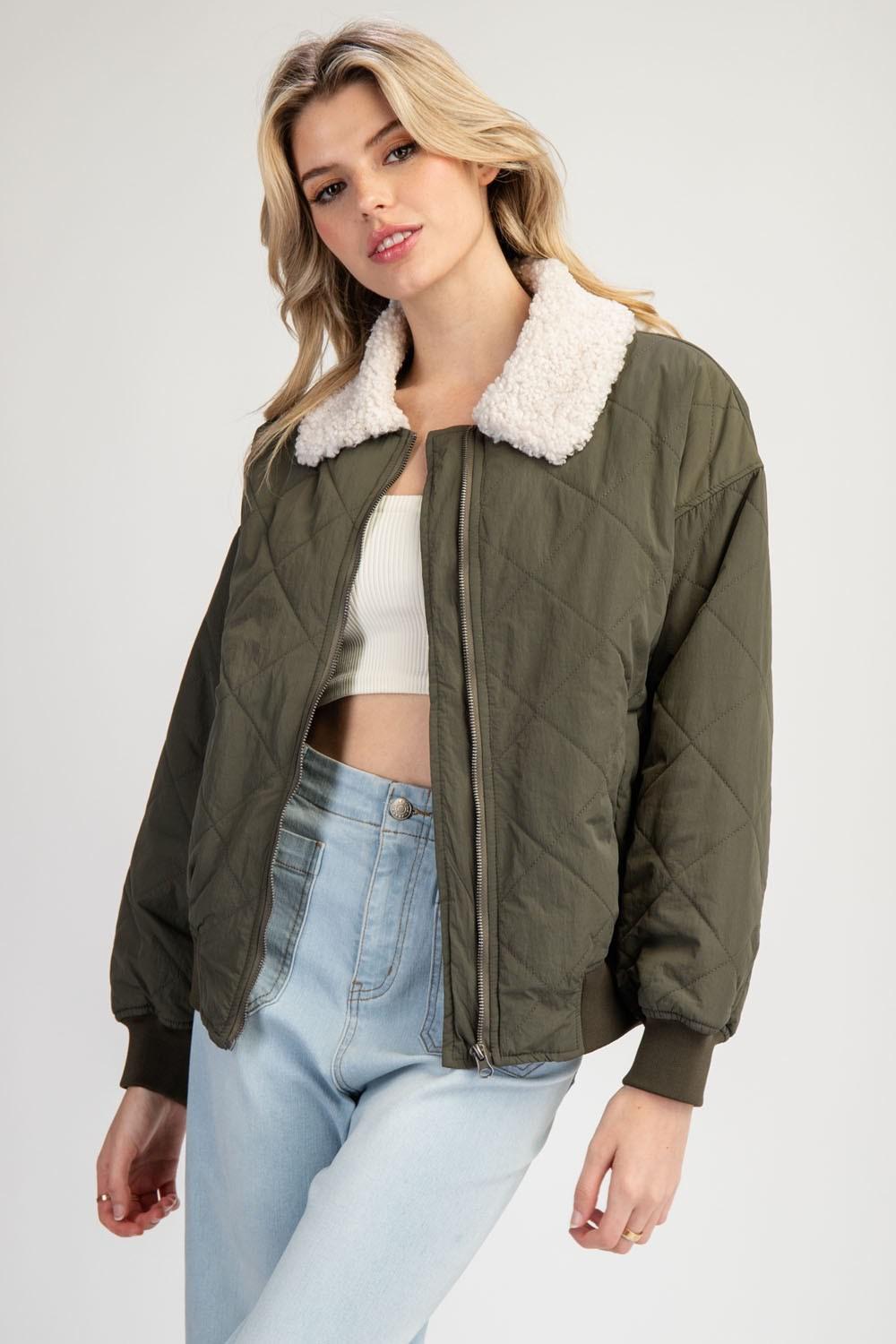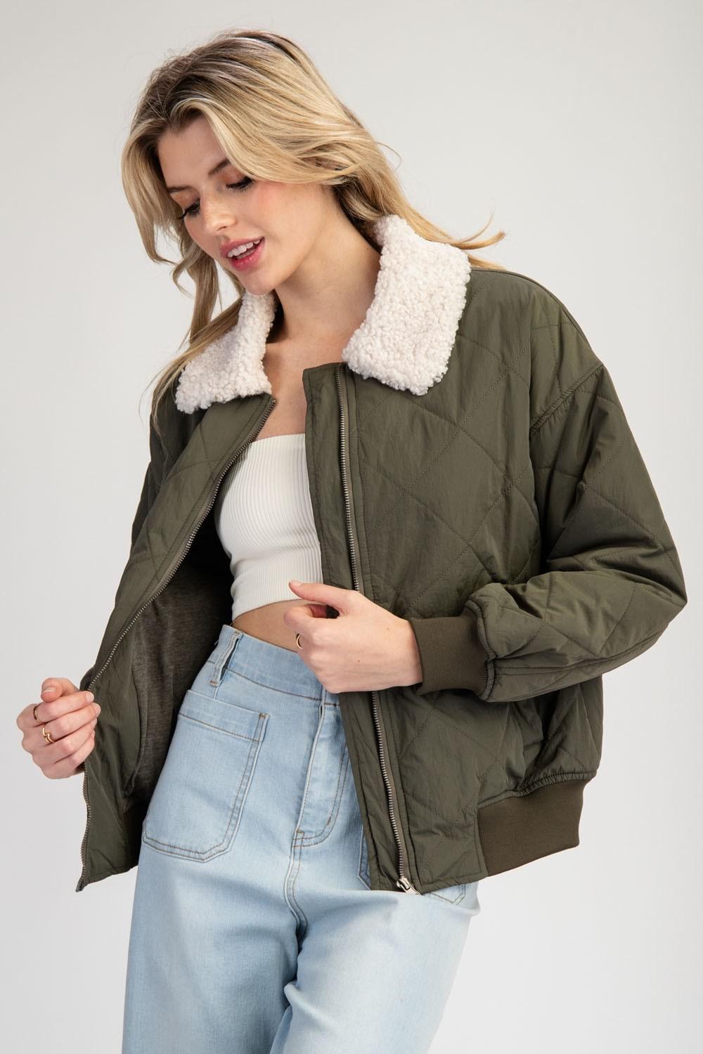 Cozy Edge Quilted Jacket with Fur Collar