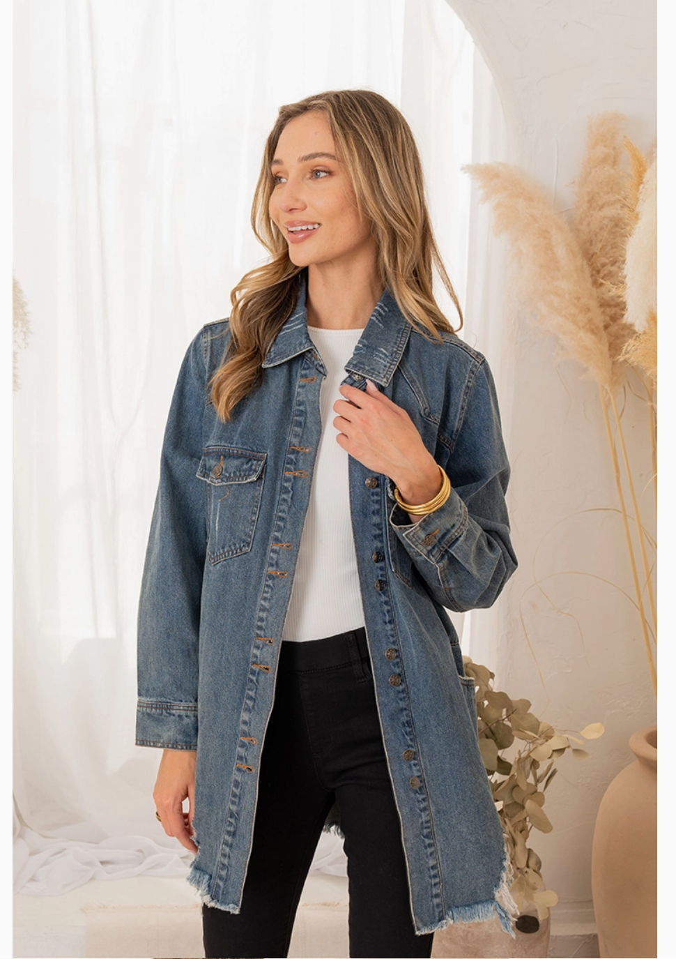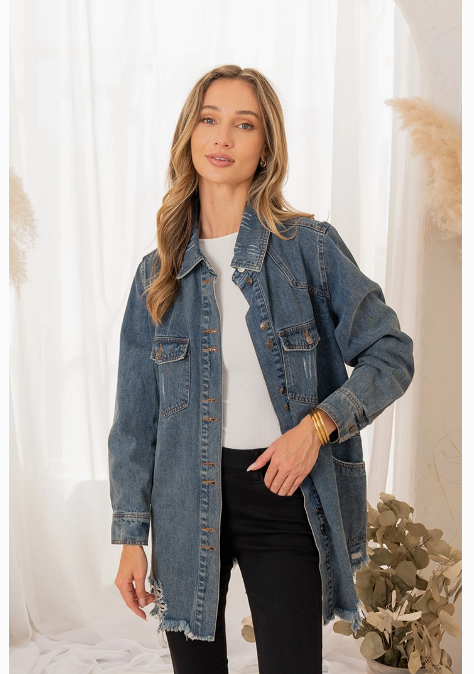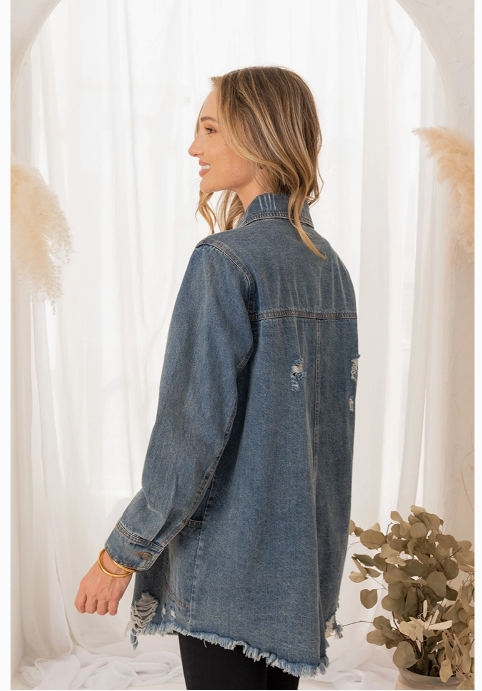 Overshirt Denim Jacket w/ Destroyed Fray Hem