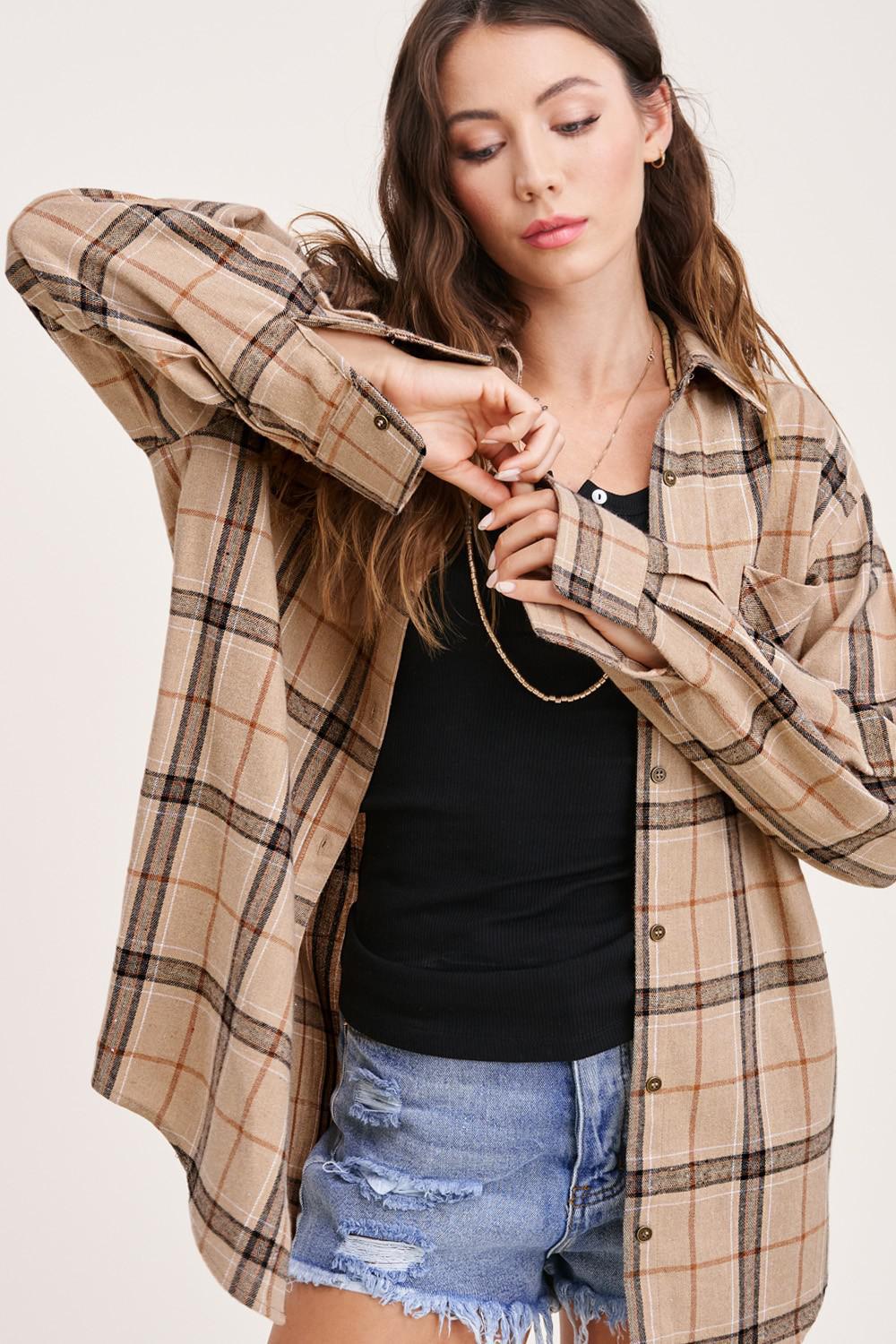 Oversized Button Down Plaid Shirt