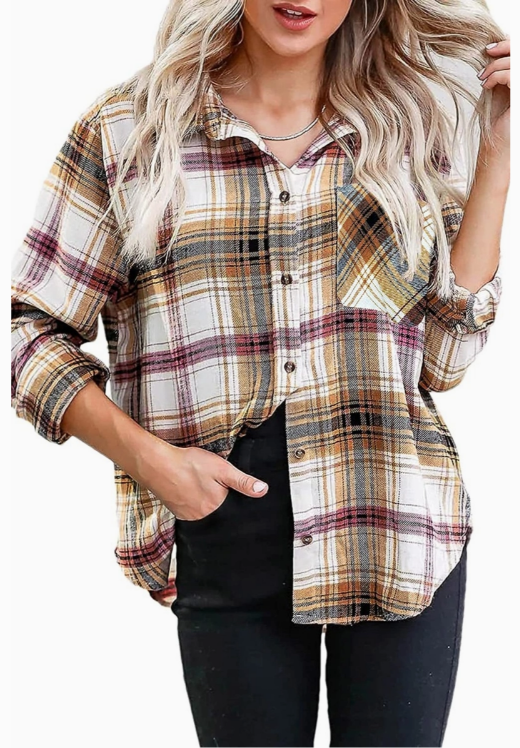PLAID BUTTON DOWN SHACKET