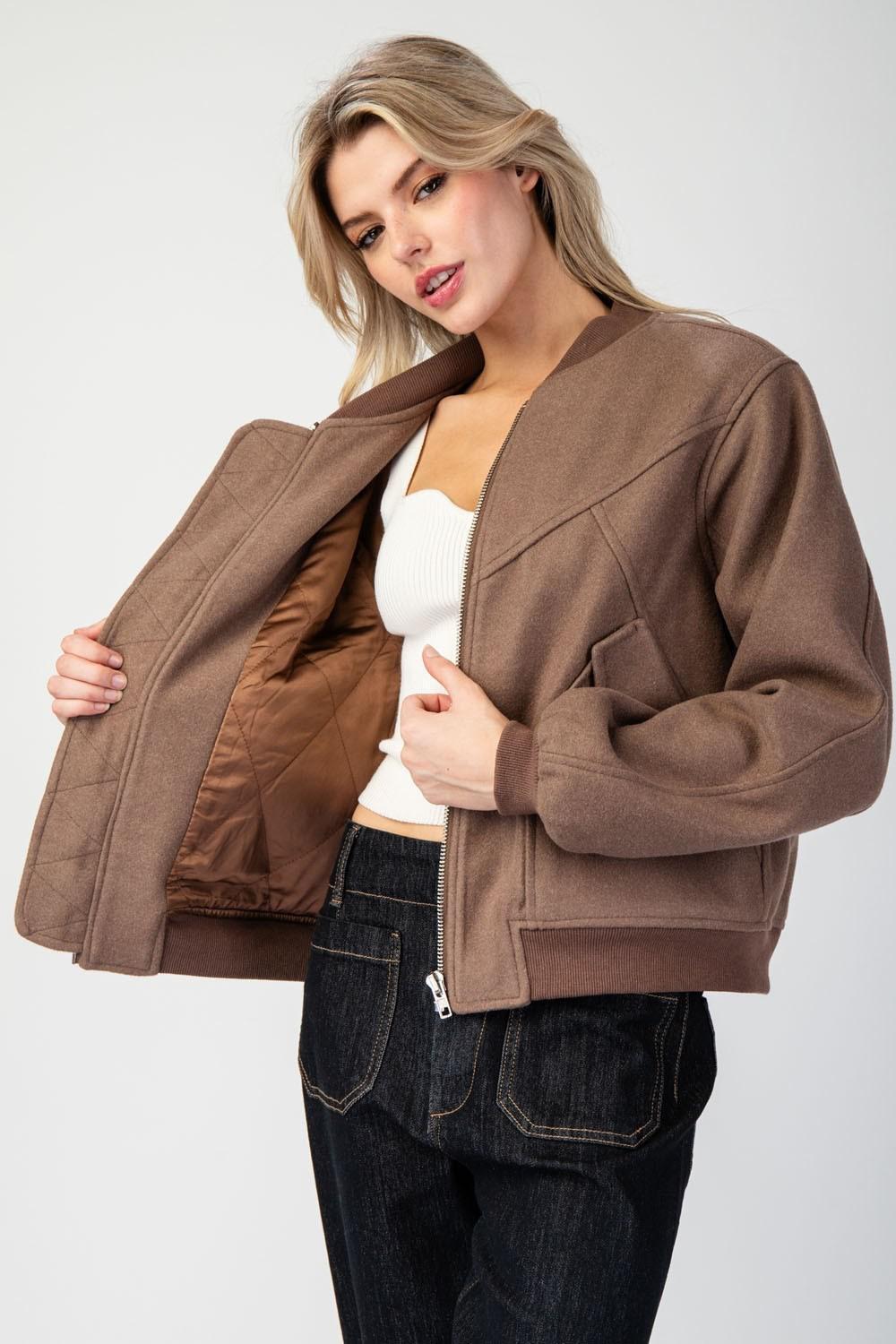 Long sleeve bomber jacket with zipper front