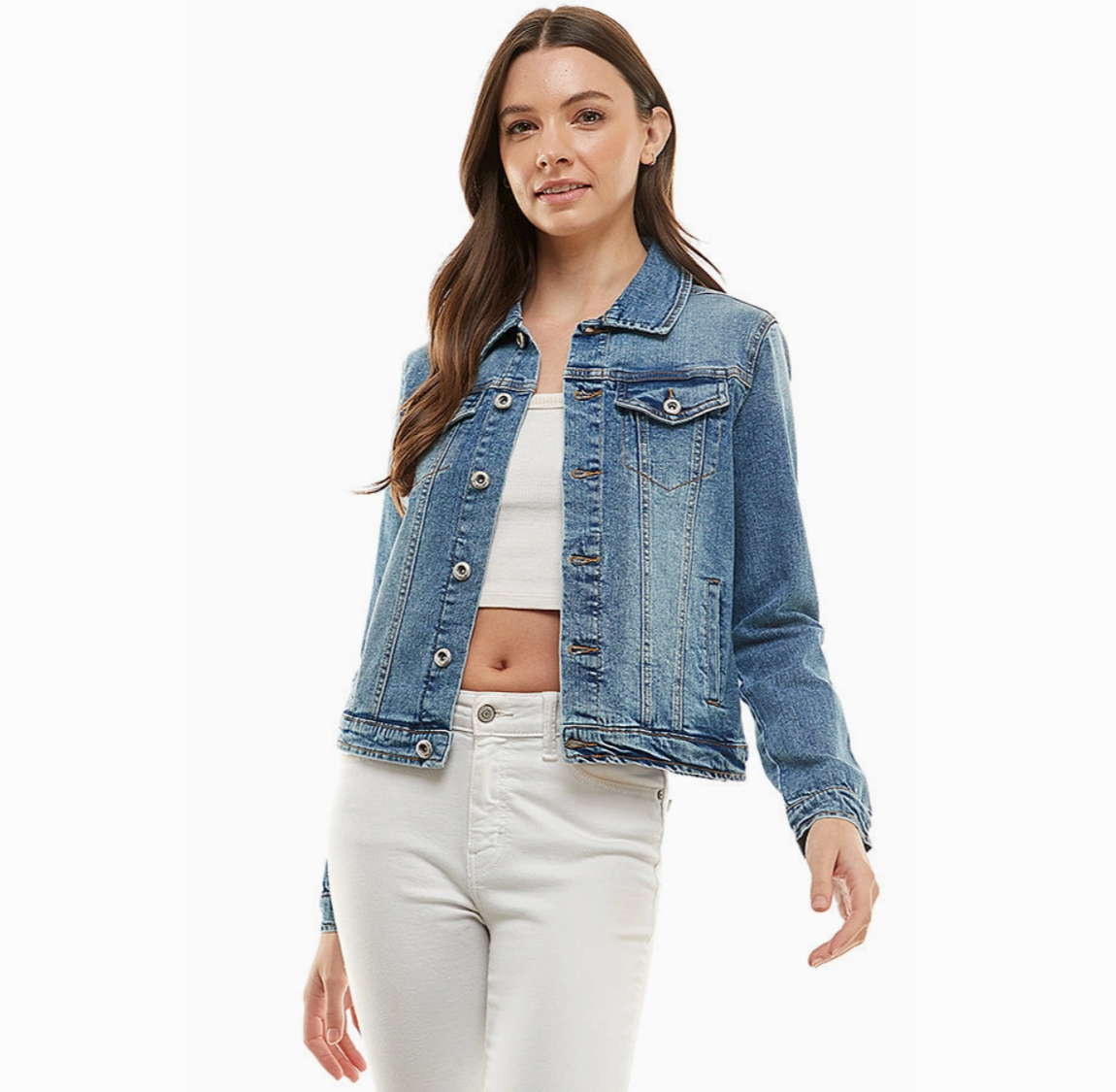 Cotton Blend Stretch Ladies Casual Denim Jacket