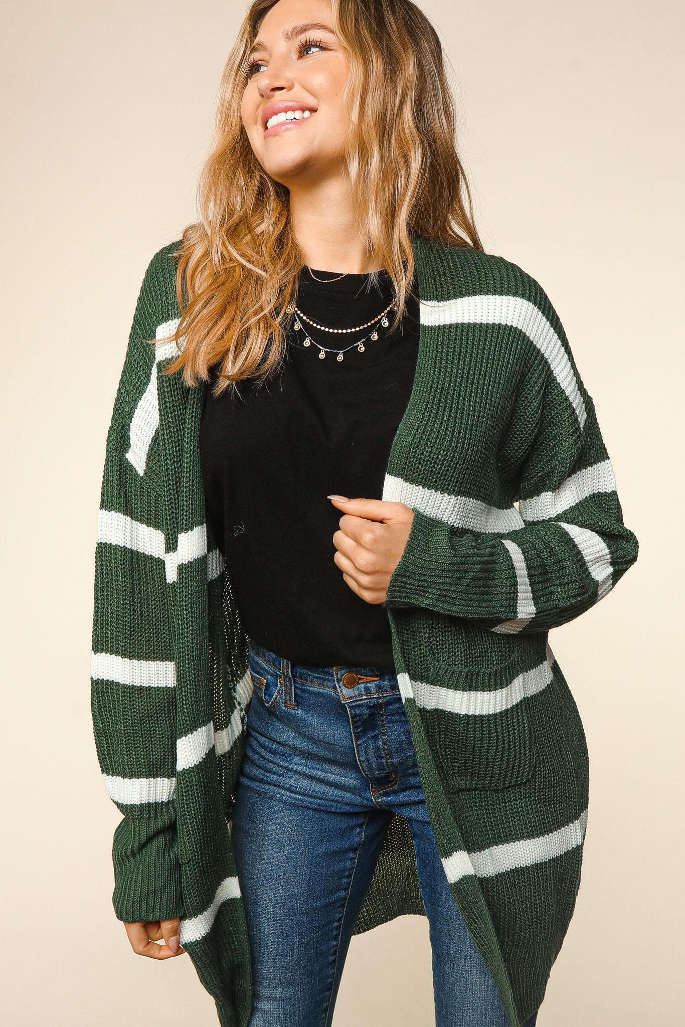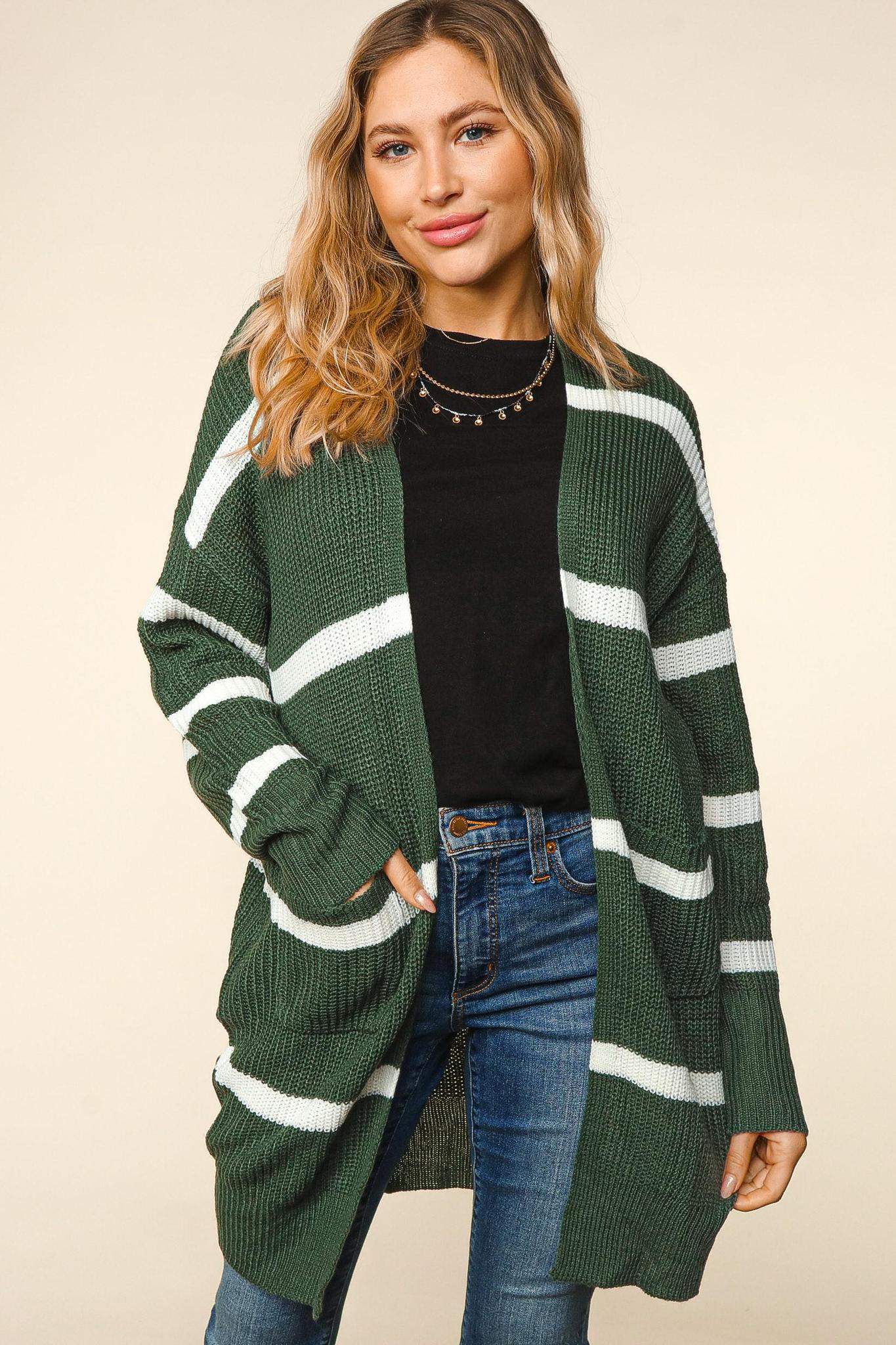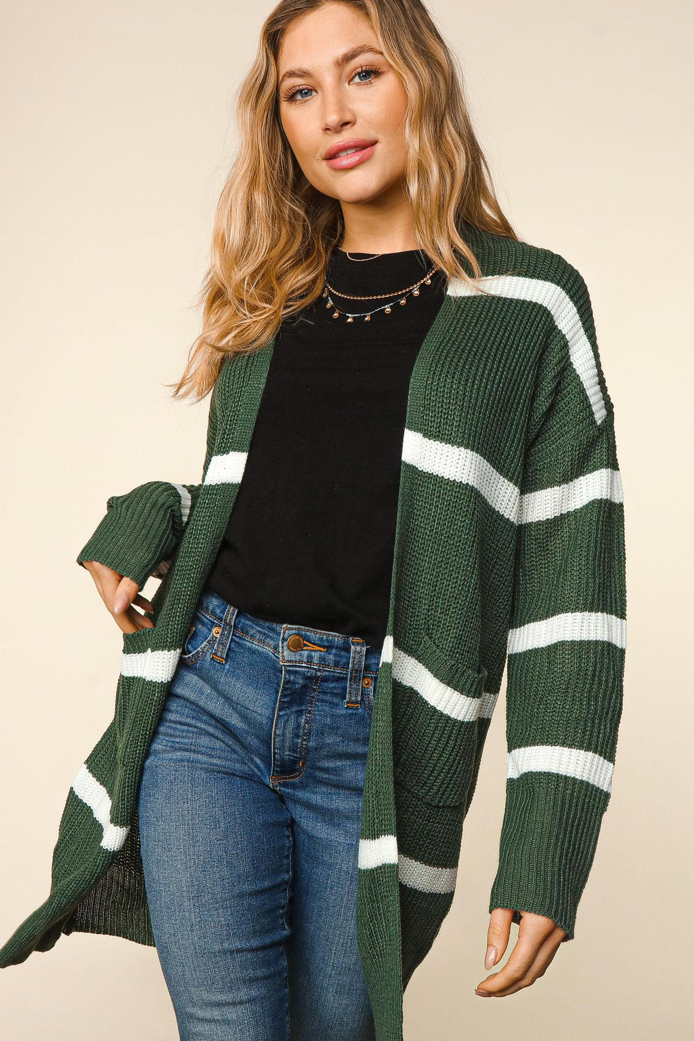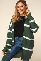 Wide Stripe Long Sleeve Cardigan with Pockets