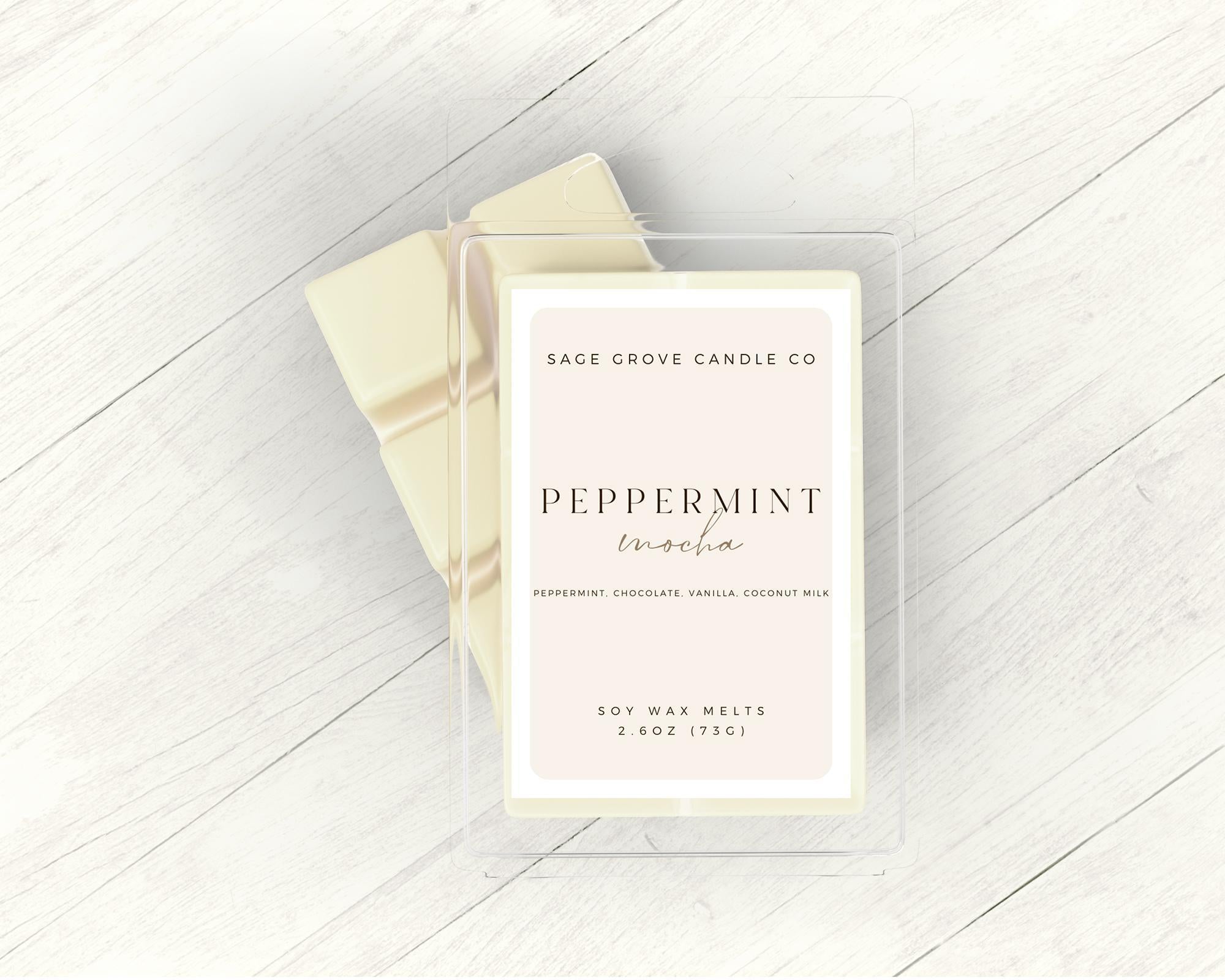 The Peppermint Mocha was melts has notes of peppermint, chocolate, vanilla and coconut milk.
