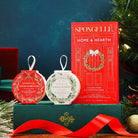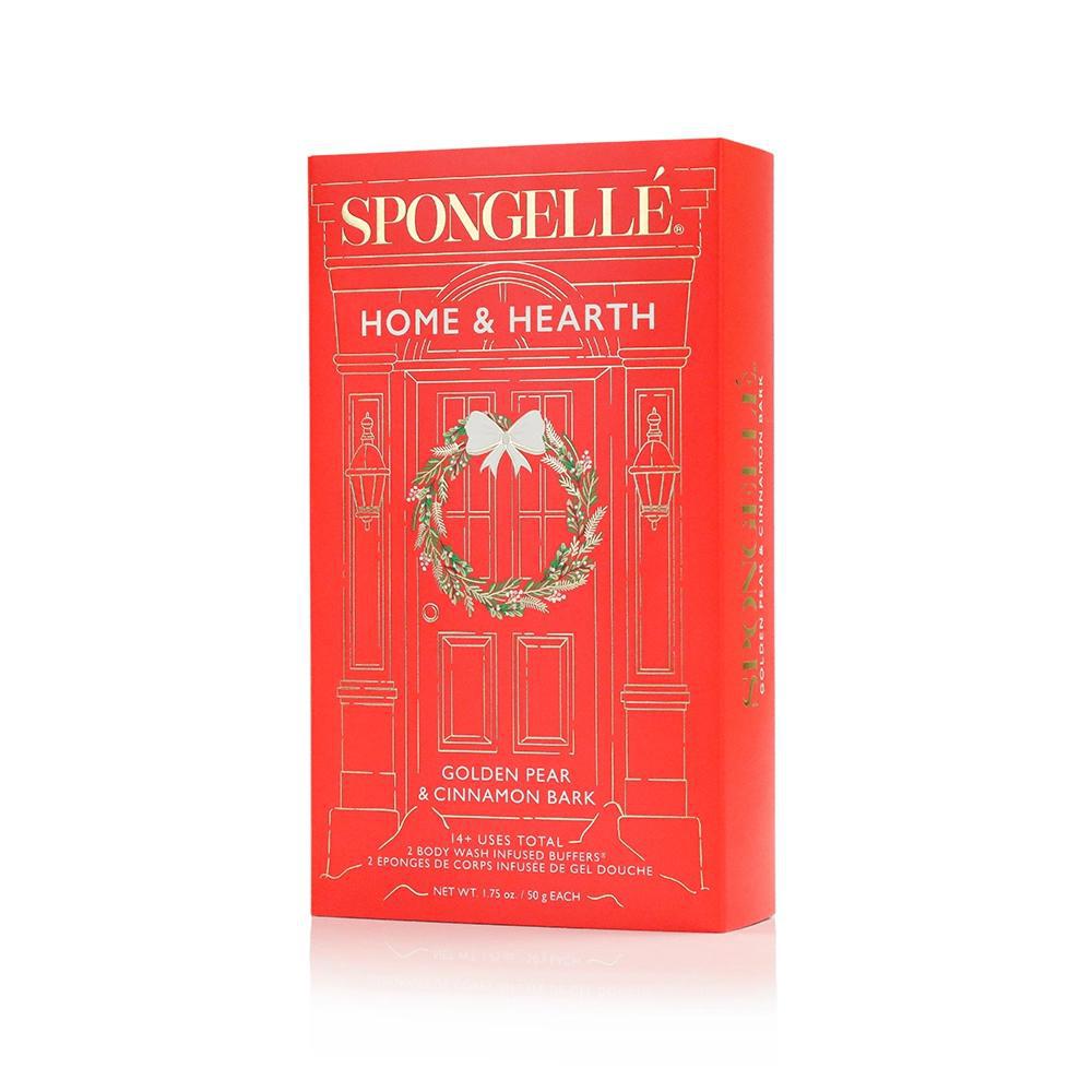 Welcome the season with Spongellé’s® Home & Hearth Holiday Wreath gift set, a luxurious blend of festive charm and high-quality skincare. This set includes two Holiday Wreath body buffers in Golden Pear and Cinnamon Bark. These beautifully crafted, wreath-inspired Body Wash Infused Buffers® make perfect ornaments or stocking stuffers, adding elegance to any holiday décor. Each buffer is infused with a rich, long-lasting fragrance and a nourishing formula that not only cleanses and exfoliates but also massages and nourishes the skin, ensuring a pampering experience.