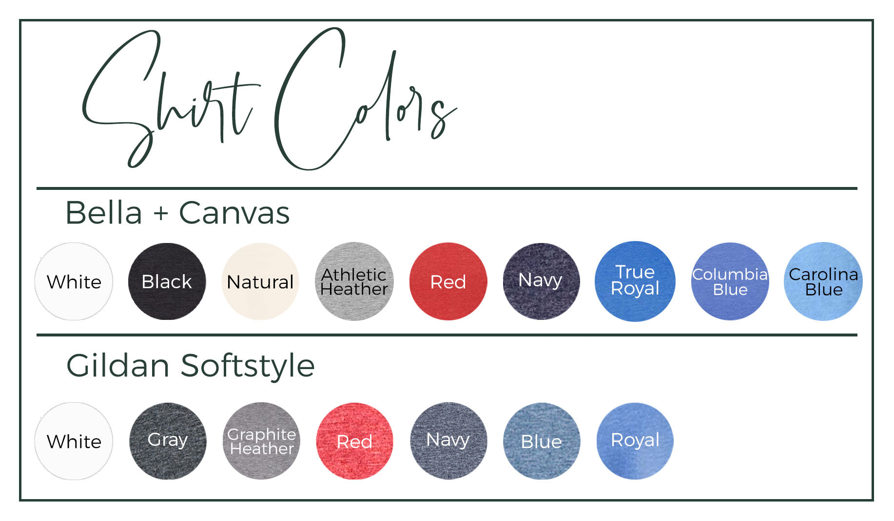 We print on premium Bella + Canvas and Gildan Softstyle tees—both known for their soft cotton/poly blend and unisex fit that flatters every body type. Whether you’re pairing it with your go-to jeans or layering it under a shacket, this tee is an effortless staple.