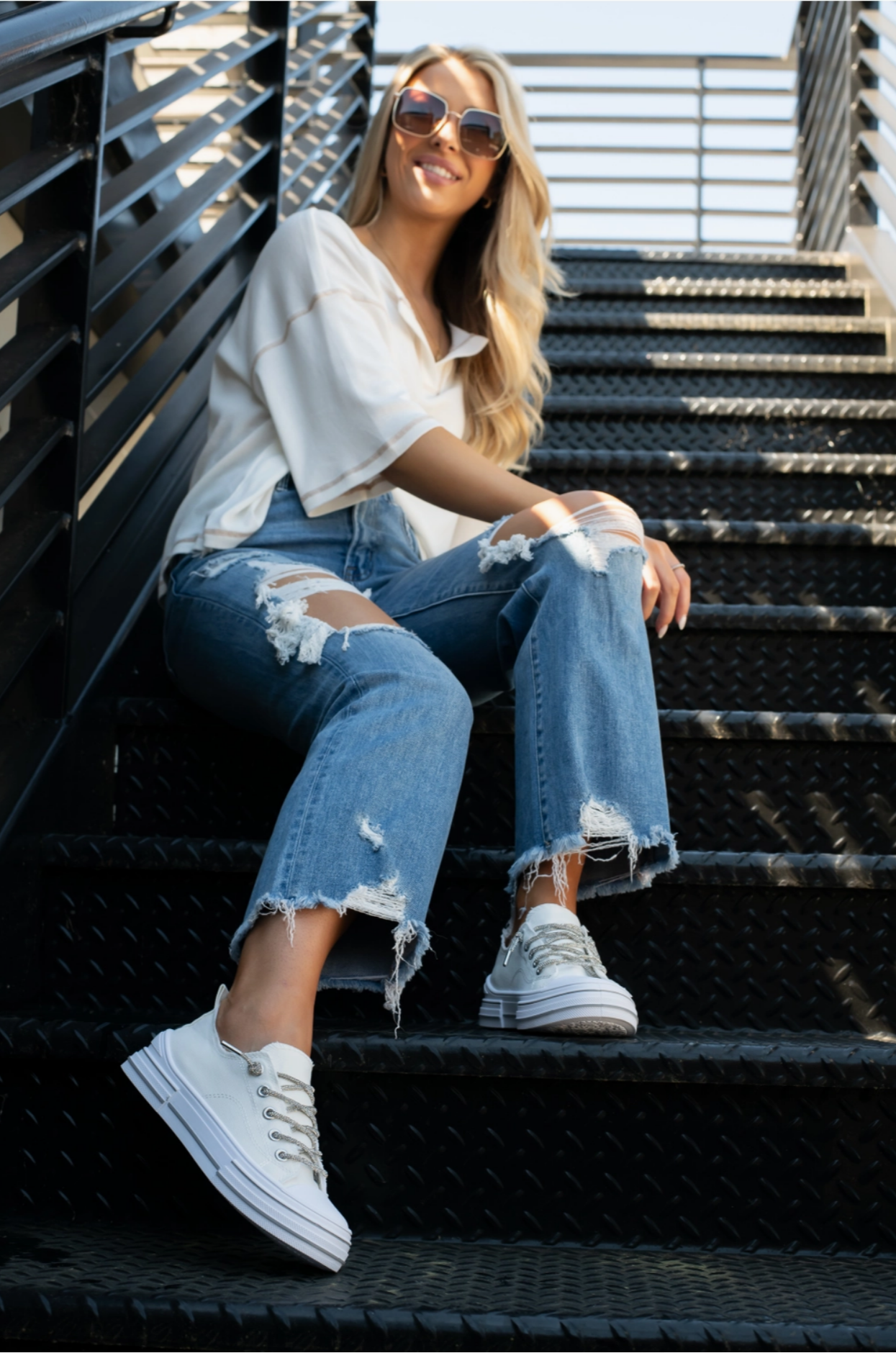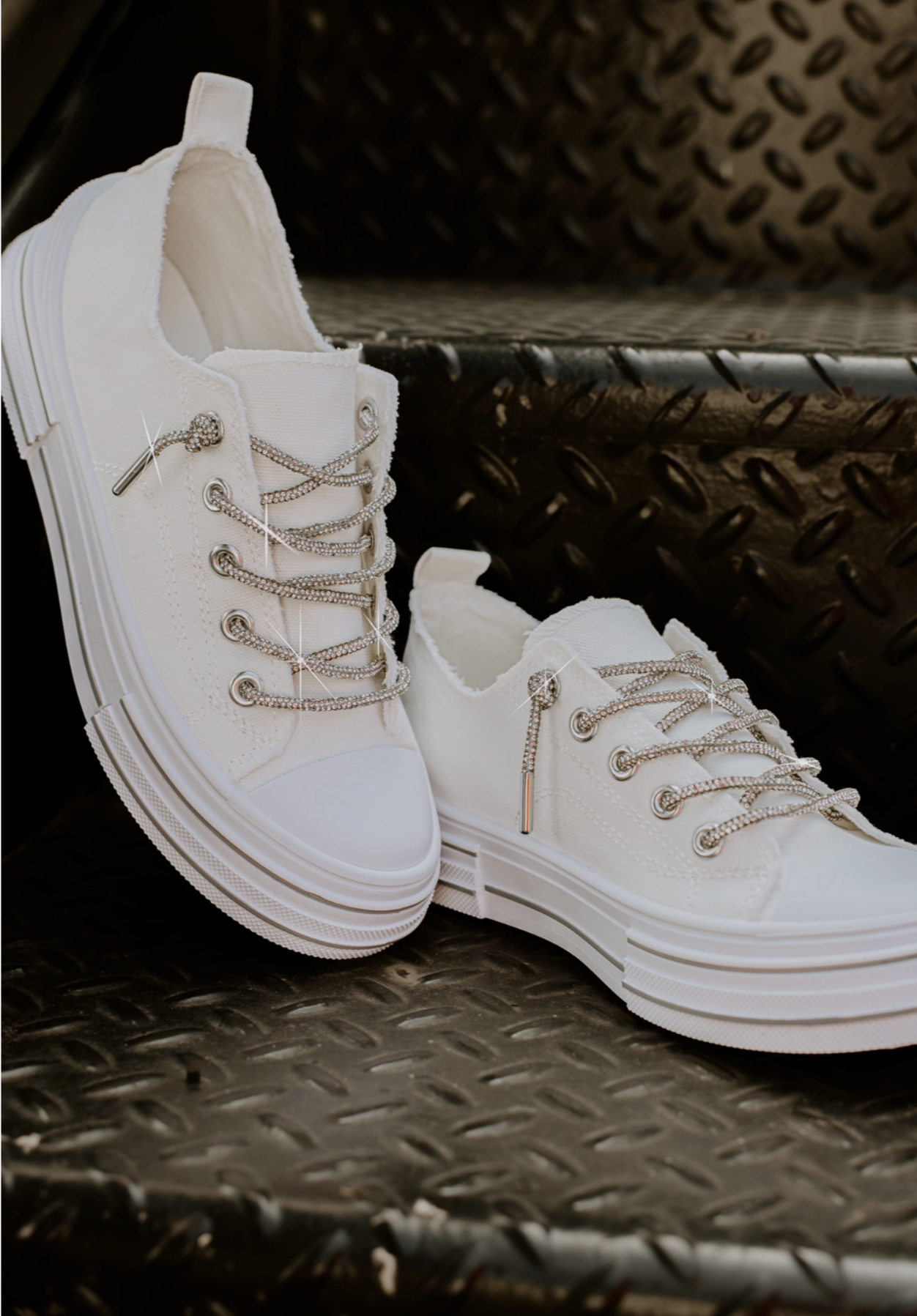 Aman - Edgy lace up women's sneaker with cushioned footbed, and sparkle laces