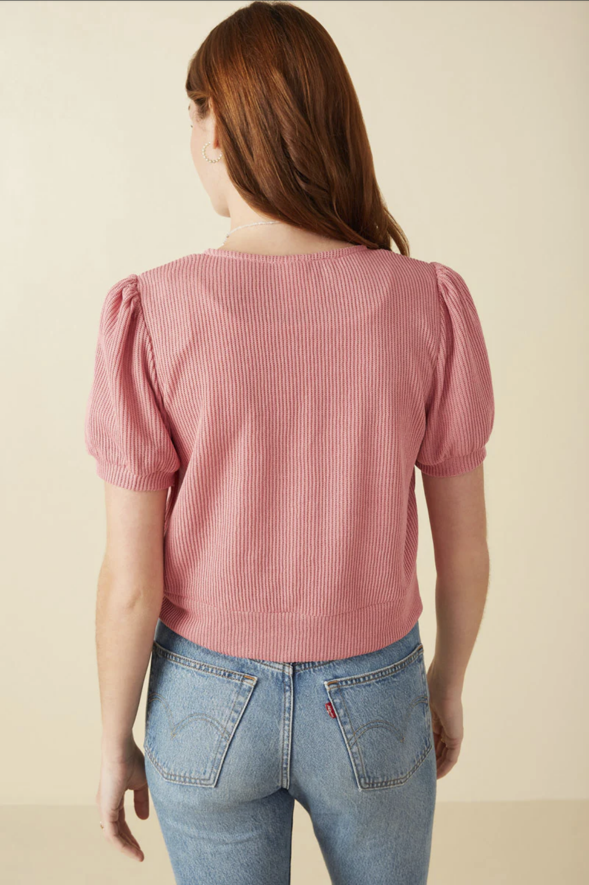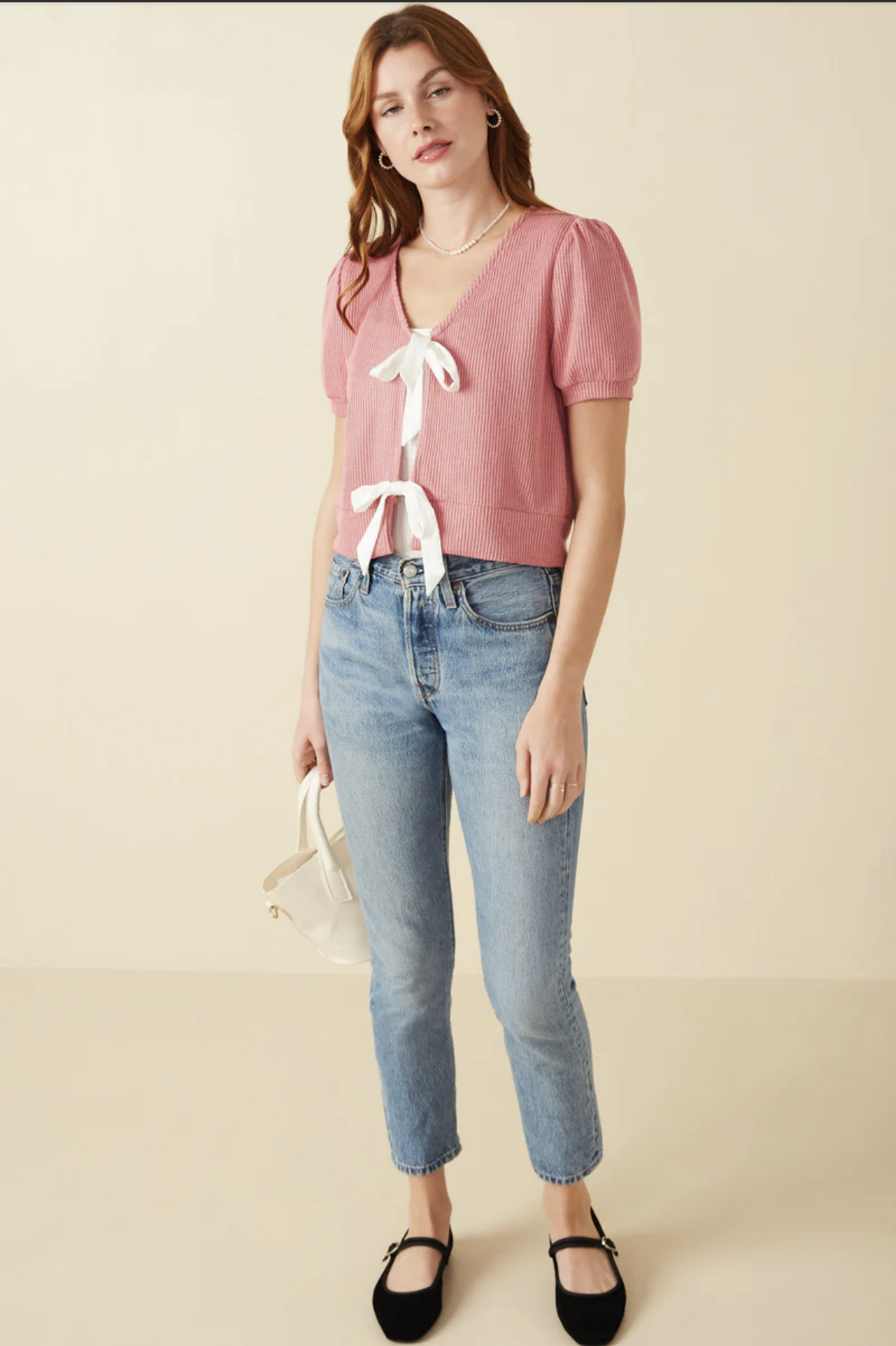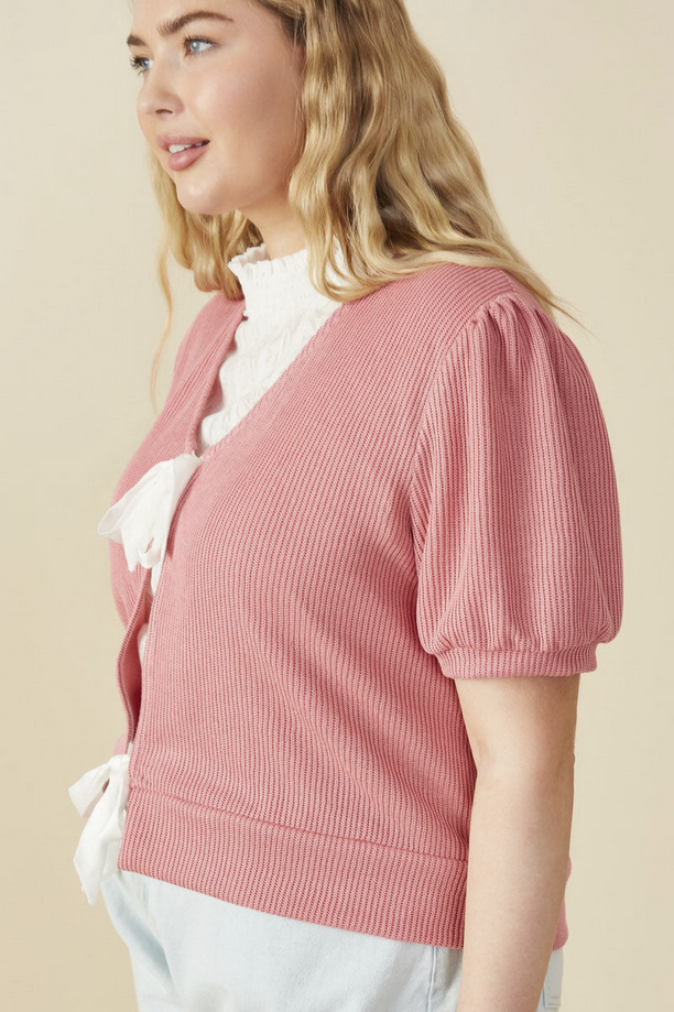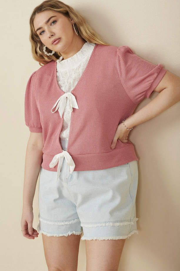 Our Ribbed Knit Bow Detail Short Sleeve Open Top Features: