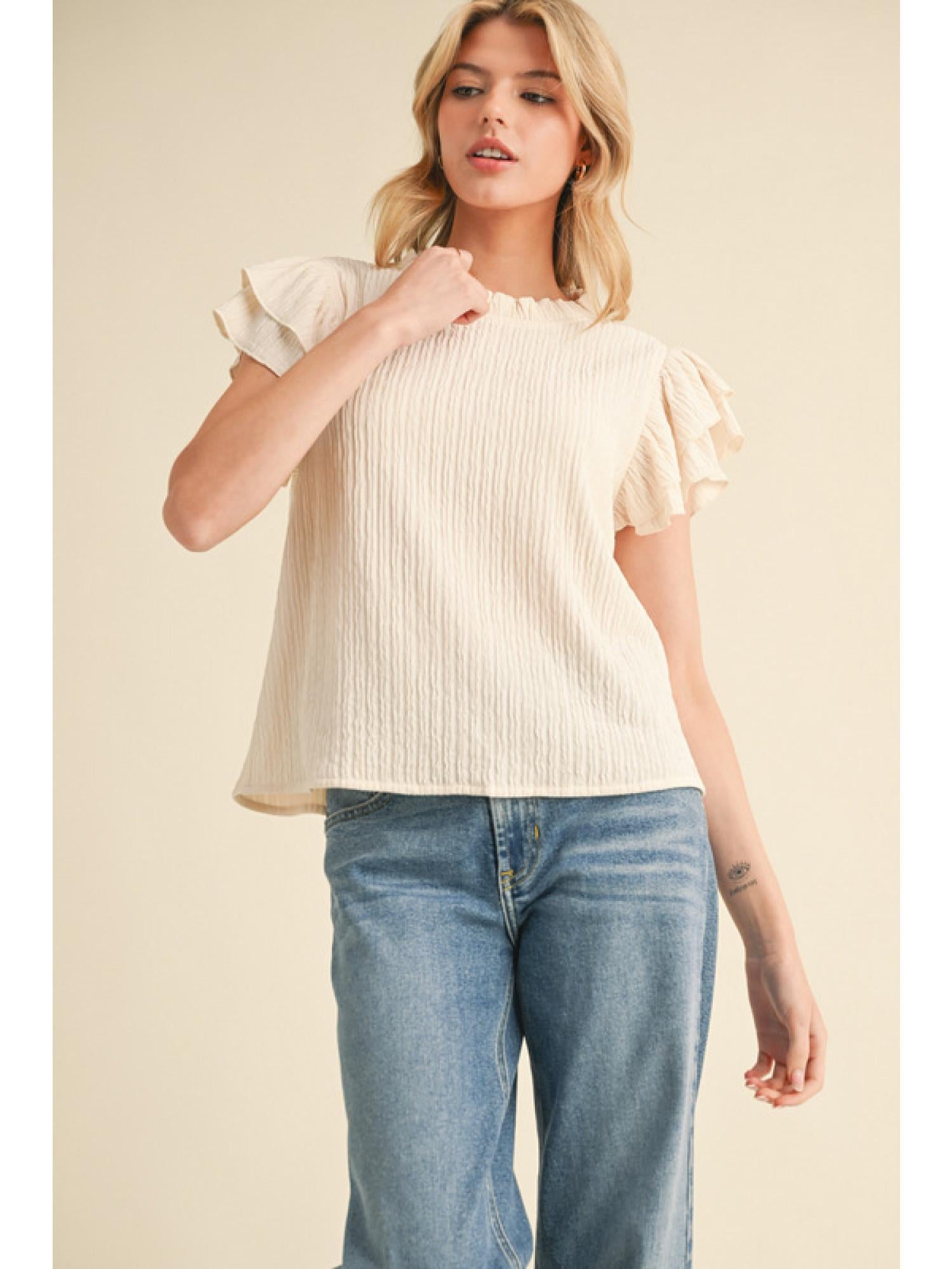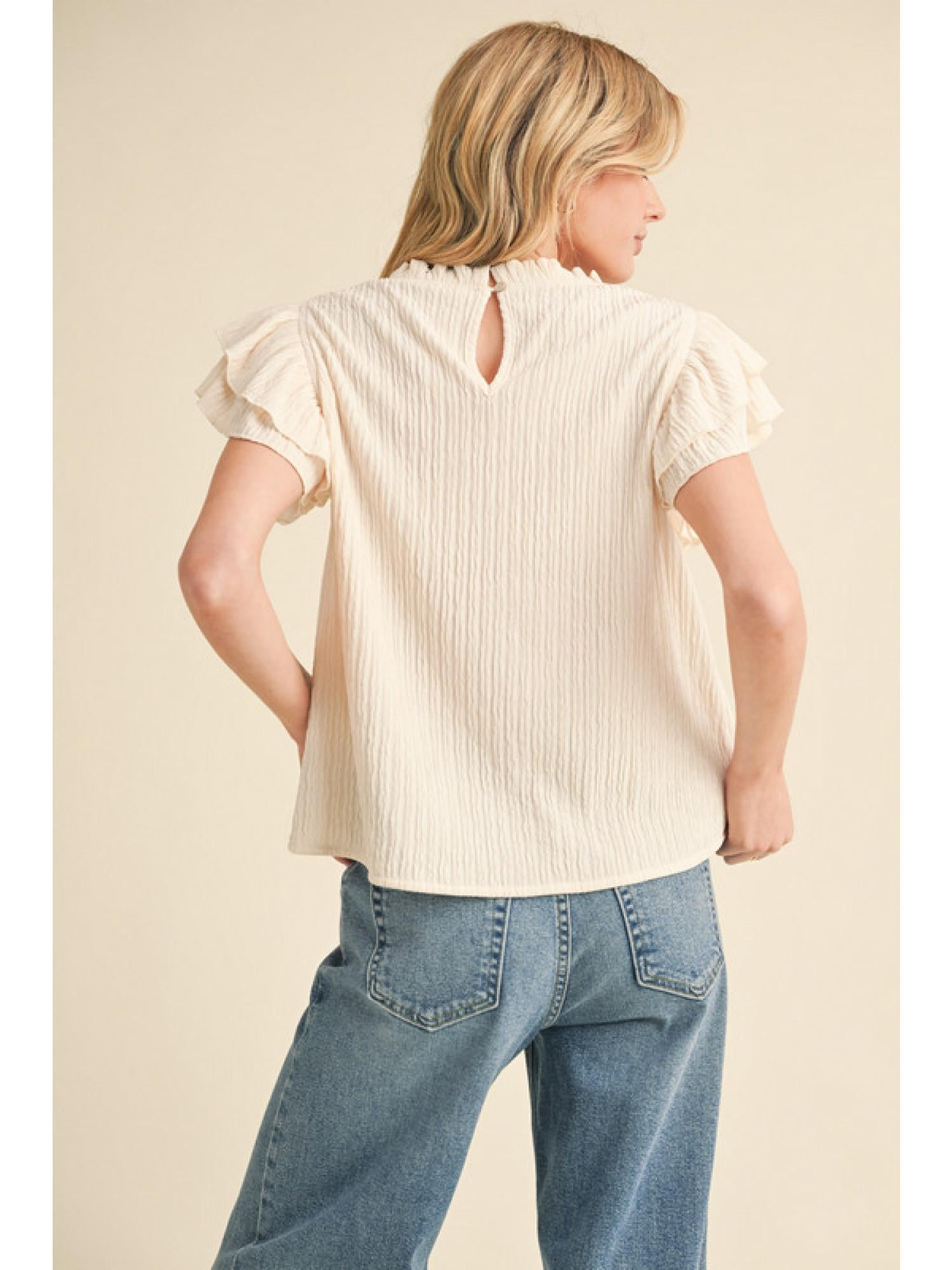 Textured Ruffly shoulder Top - Cream