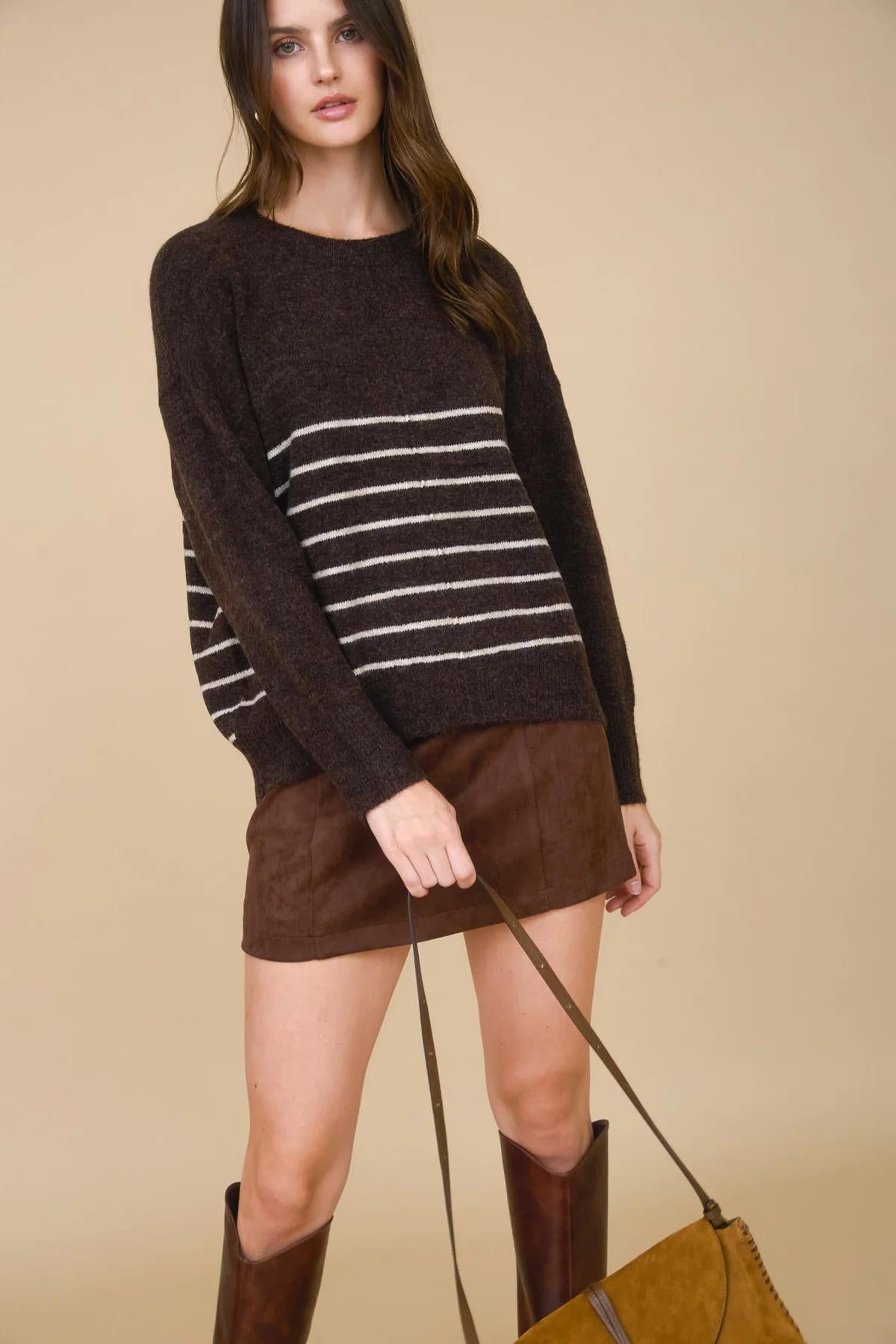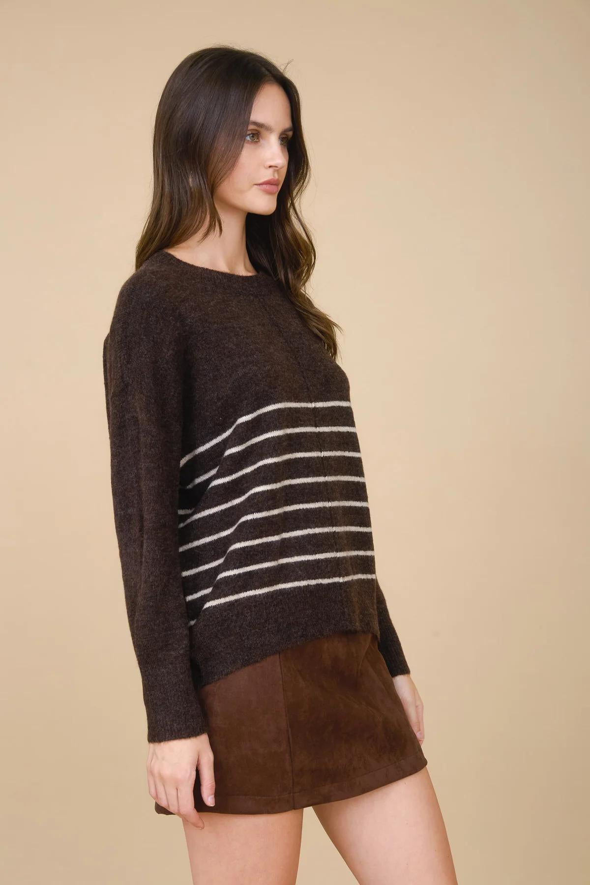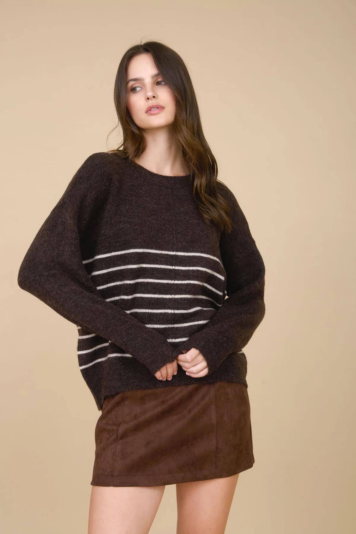 Meet your new everyday go-to for crisp fall days—the Cozy Stripe Pullover. Designed with a relaxed fit and subtle front seam detail, this knit sweater brings an effortless balance of comfort and style. Available in two versatile shades—rich brown and classic khaki—it’s the kind of piece you’ll reach for again and again, no matter what’s on your calendar. The soft knit fabric makes it cozy without being heavy, so you can layer it up for chilly days or wear it solo when the temps are just right.