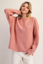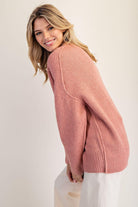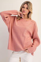 Add a soft pop of color to your fall wardrobe with the Everyday Glow Ribbed Sweater. Designed in a dreamy melon shade called Mellow Sunset, this knit blends cozy comfort with modern detail. A relaxed crewneck silhouette, tonal ribbed-and-smooth textures, and exposed seam accents make it the perfect mix of casual and elevated. Lightweight yet warm, this sweater is an easy go-to for everything from workdays to weekend coffee runs.