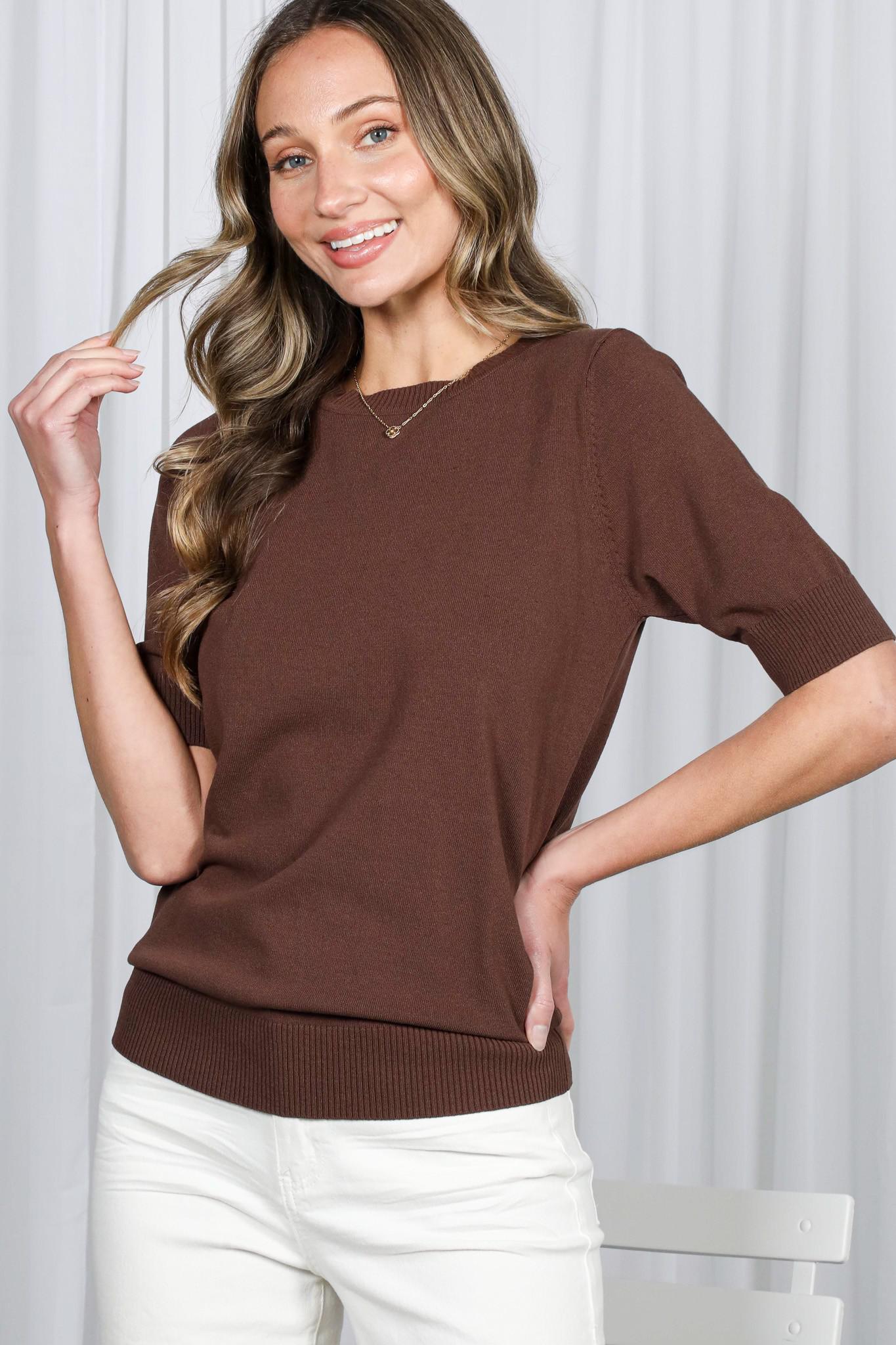 This short sleeve crew neck sweater is your go-to for polished comfort. Made from a lightweight, silky-soft knit blend, it gives just the right amount of stretch and structure. Whether you're dressing for the office, layering for fall, or just love a minimal and elevated look — this one’s a keeper.