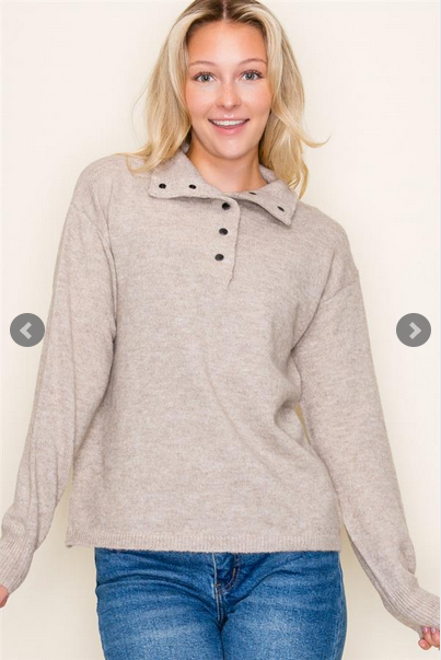 Mock Neck Half Snap Pullover Sweater – Taupe