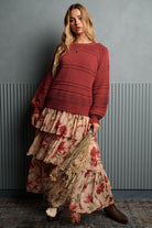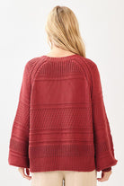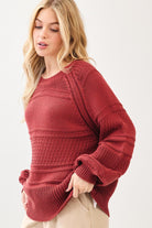 Warm, cozy, and effortlessly chic — the Cider & Spice Sweater is everything you want in a fall knit. Made from 100% cotton, this oversized pullover features a unique multi-knit patchwork pattern that adds texture and interest without being fussy. The crew neckline, balloon sleeves, and relaxed oversized fit make it a go-to for laid-back weekends, casual workdays, and cozy nights in.