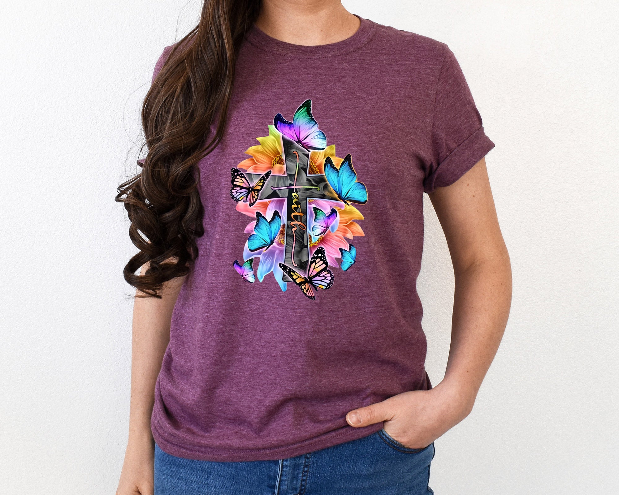Teal Floral Faith Cross Graphic Tee