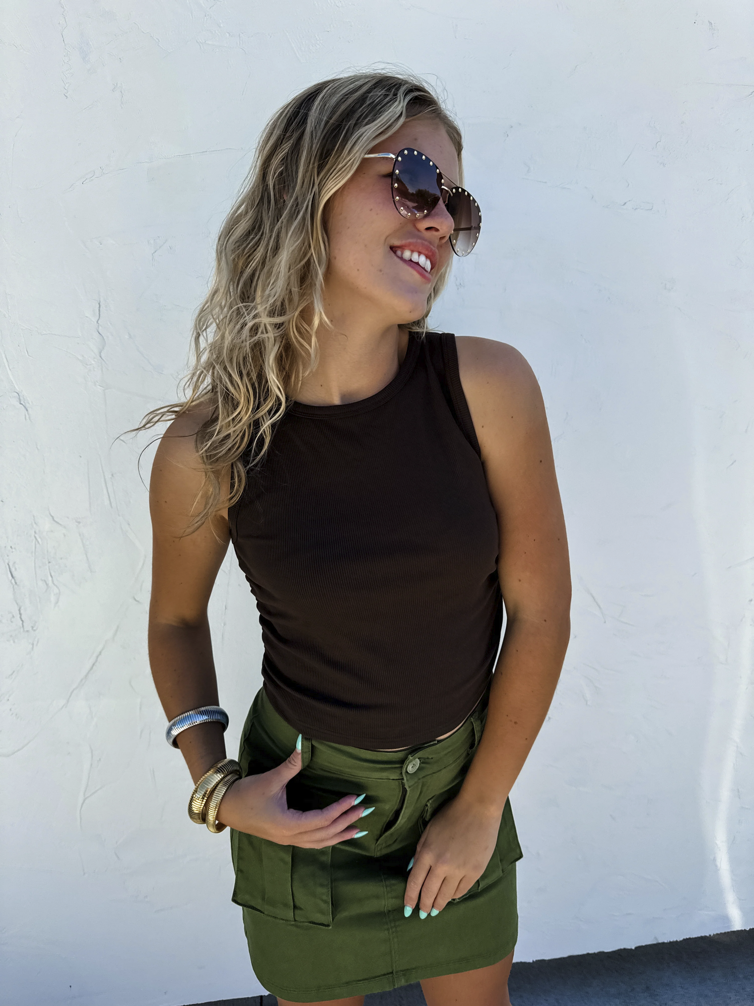 Tan Taylor Ribbed Tank