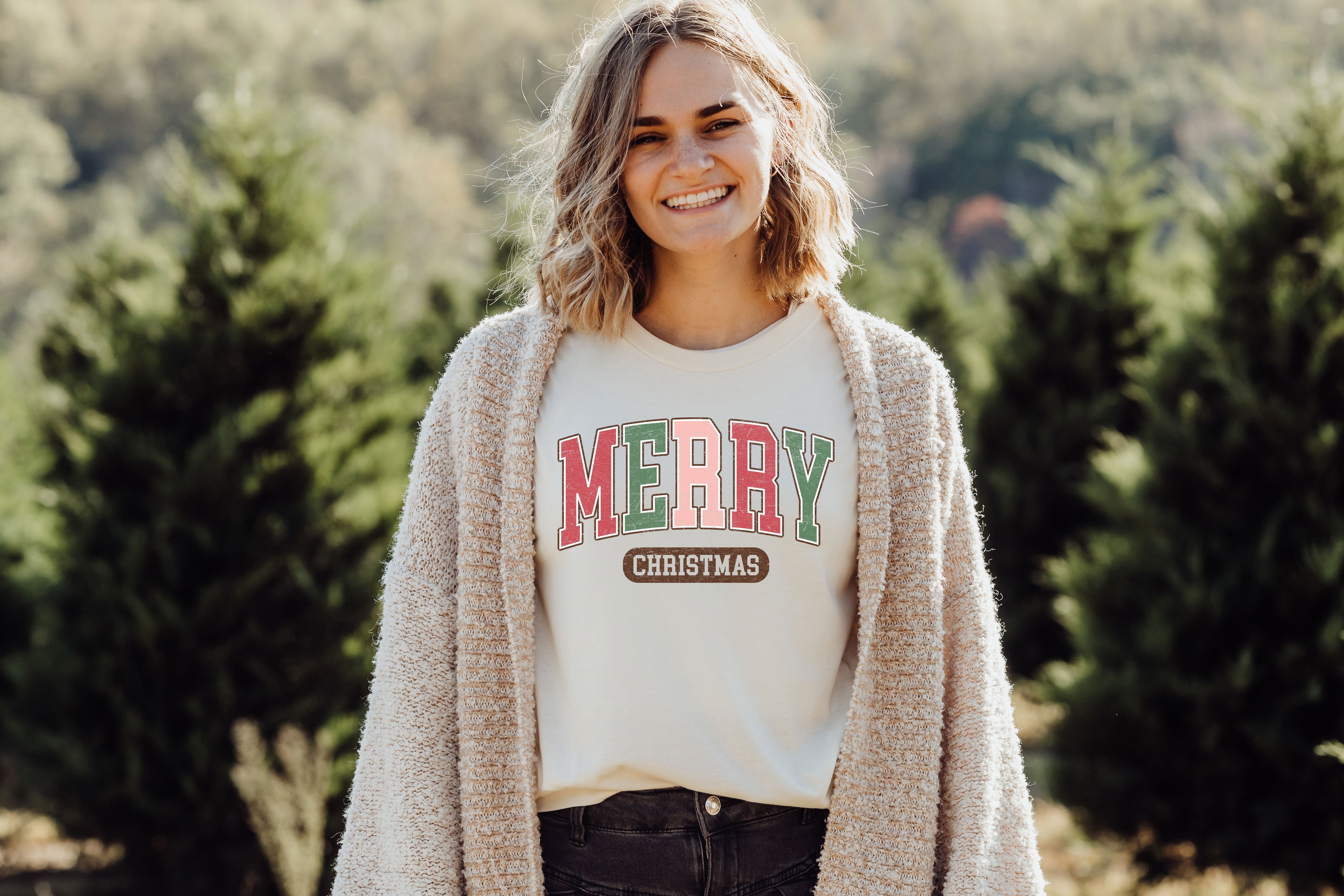 Merry Christmas Varsity Graphic Tee
