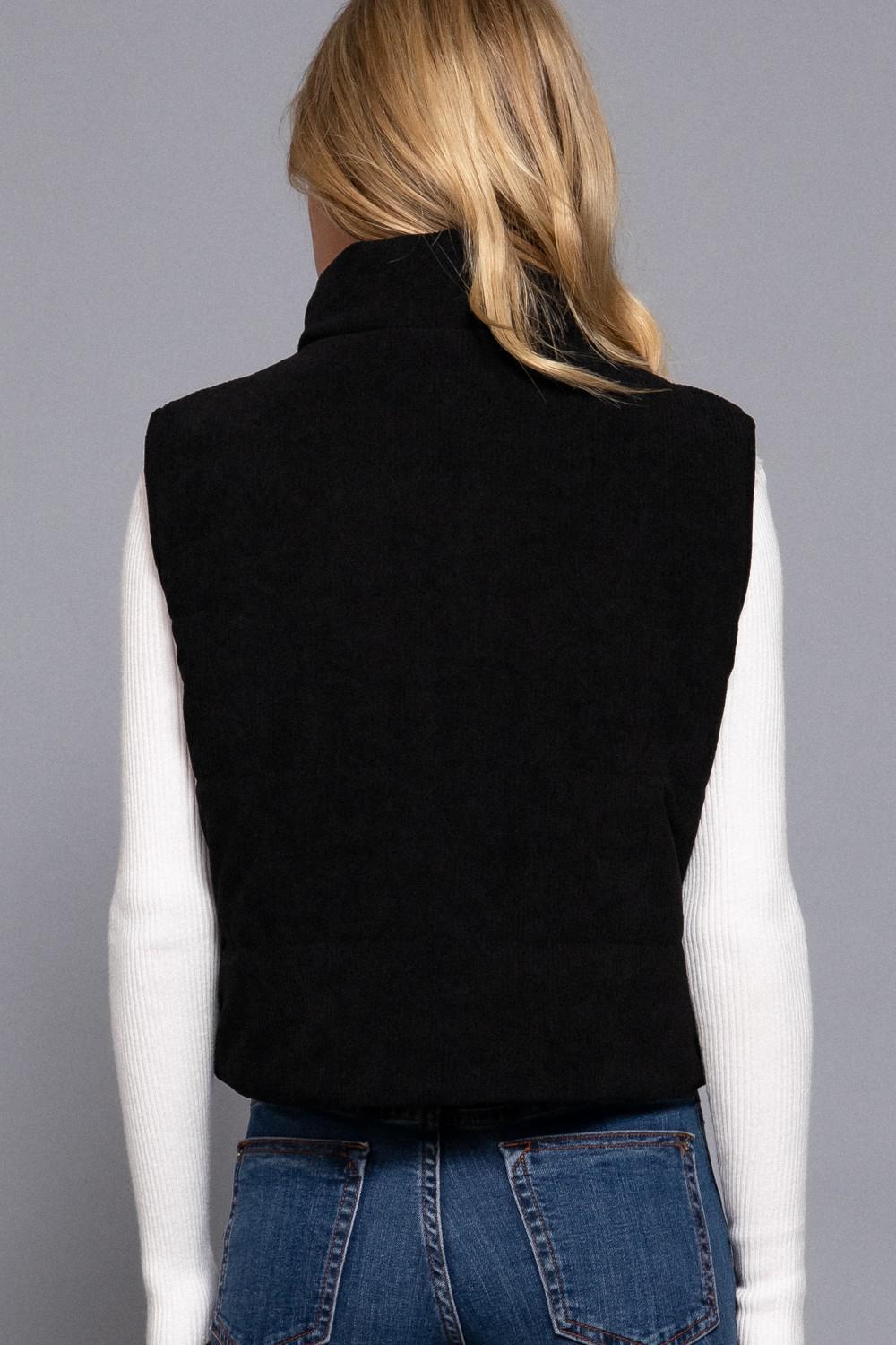 HIGH NECK INNER FAUX FUR ZIP UP CORDUROY PUFFER VEST