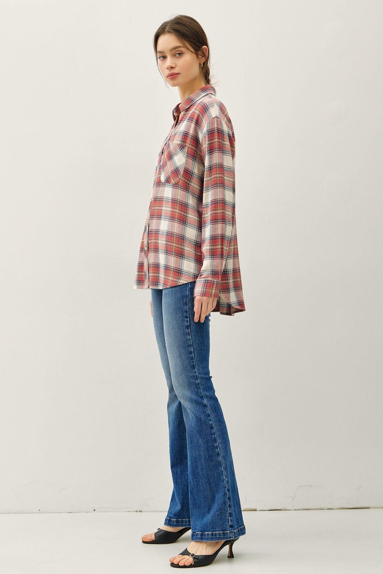 Soft, timeless, and made for layering season, this oversized plaid shirt brings all the autumn energy. The ultra-soft cotton-rayon blend drapes beautifully without feeling bulky, while the relaxed fit and drop shoulder keep the vibe effortlessly cool.
